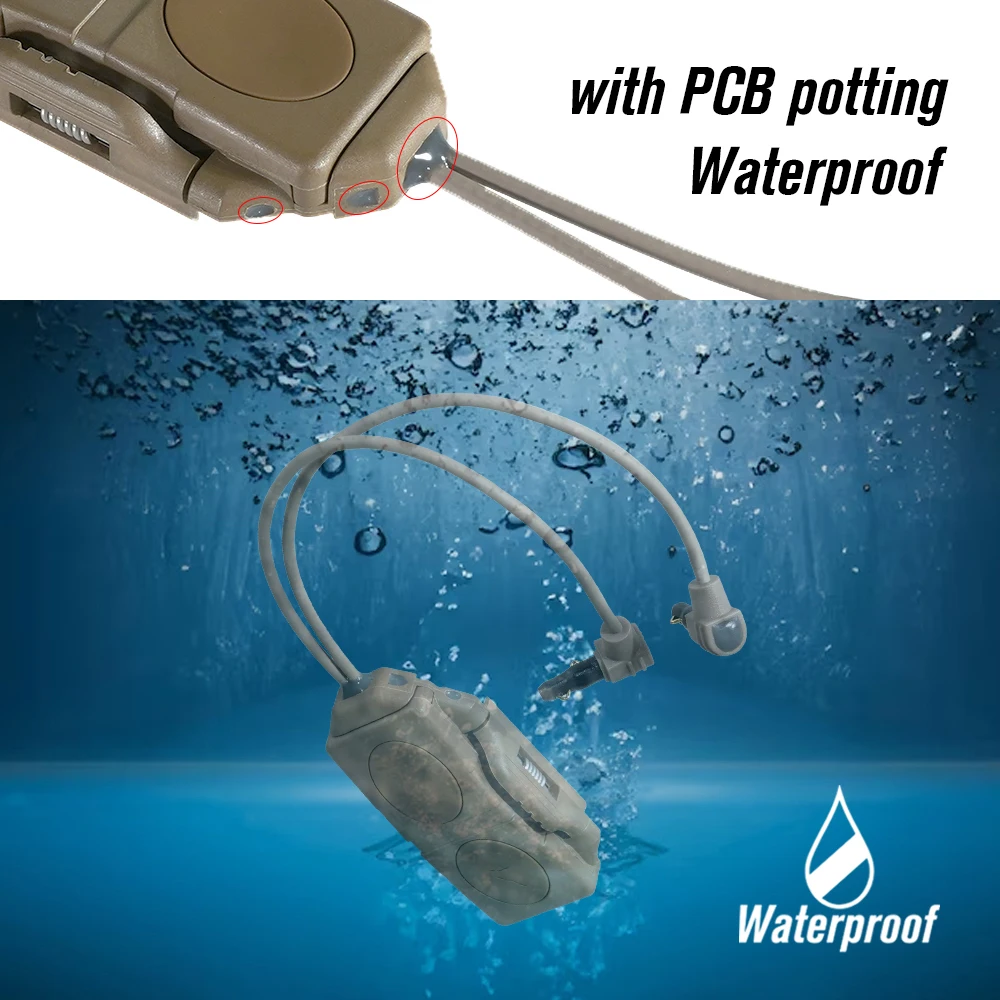 Robusto y confiable, el interruptor es resistente al agua con clasificación IP68, capaz de estar completamente sumergido y mantiene un funcionamiento impecable. Diseñado para manejar los entornos más difíciles, es la mejora definitiva para cualquier operador táctico.