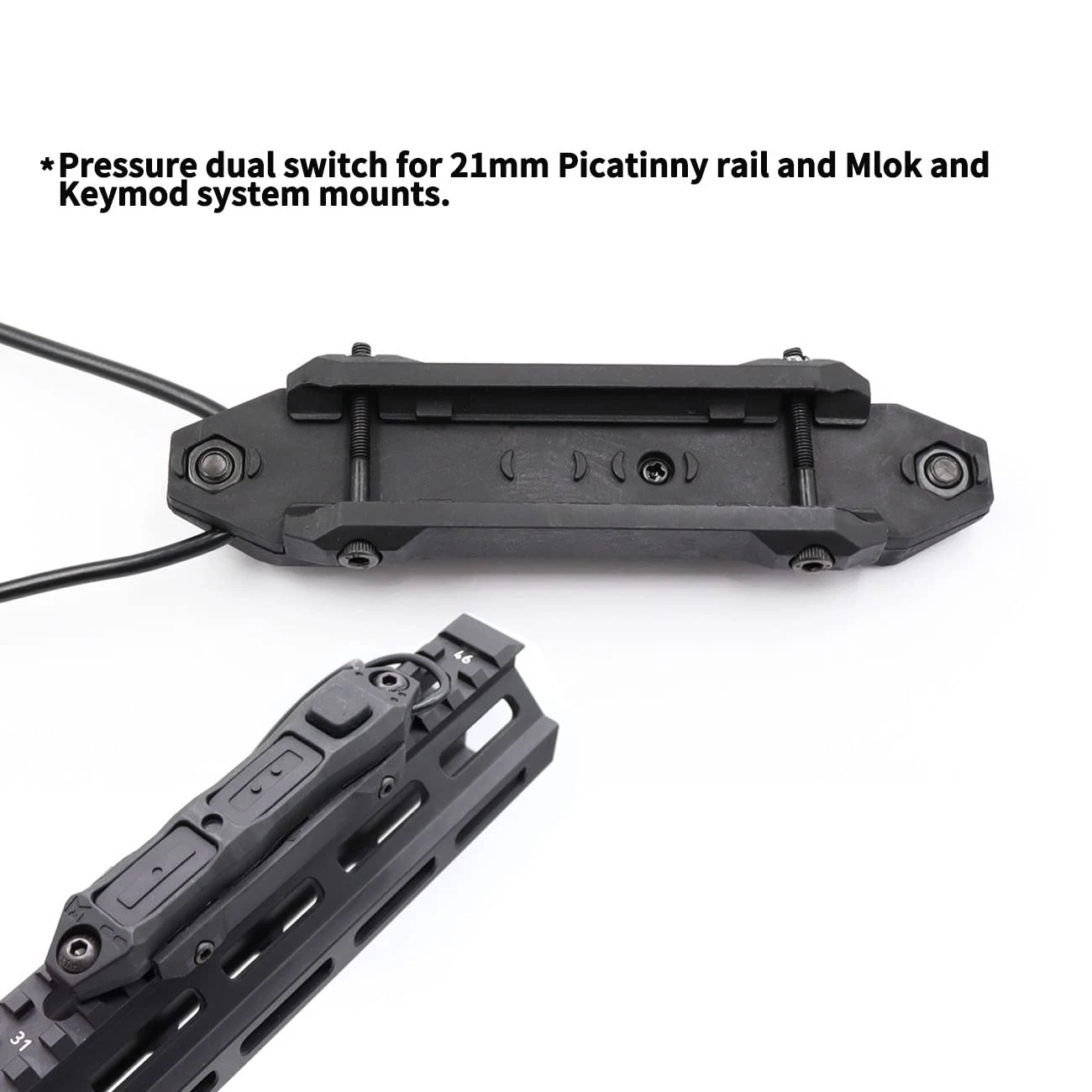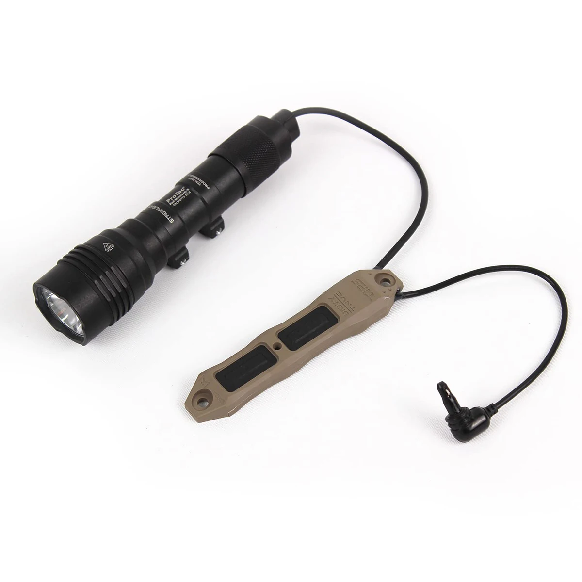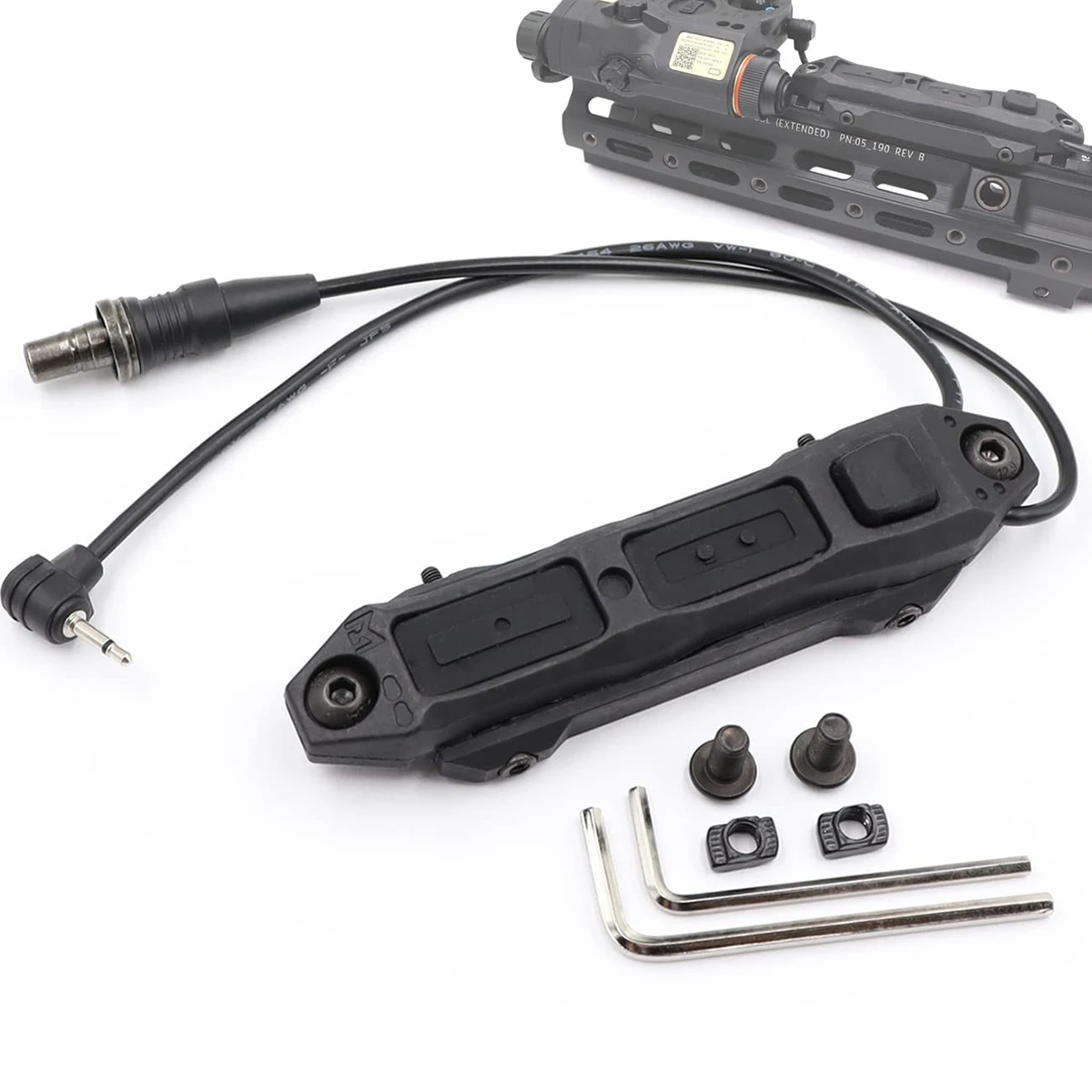 ➤ Interruptor dual de presión táctica: el interruptor dual remoto puede controlar la linterna y el láser al mismo tiempo, enchufe SF: para luces de reconocimiento de la serie M; 2,5 pines delgados: Para miras láser de la serie PEQ.