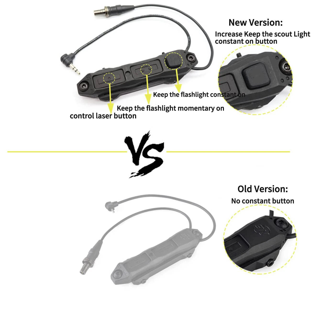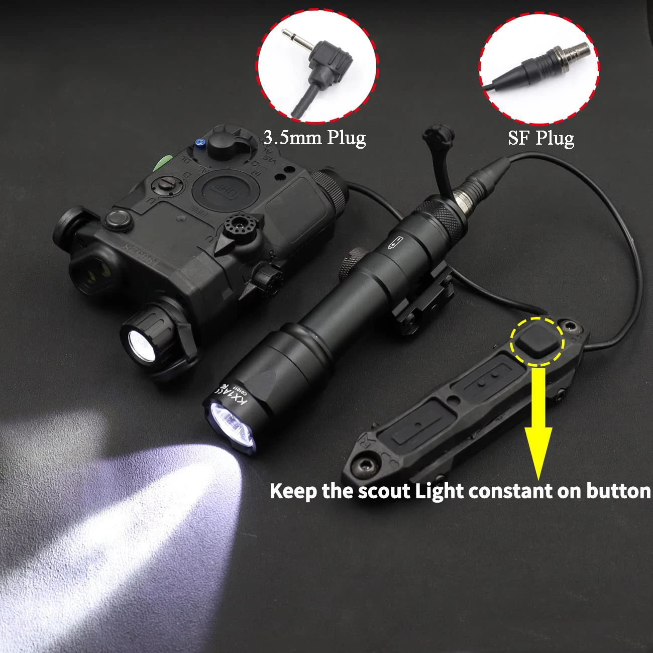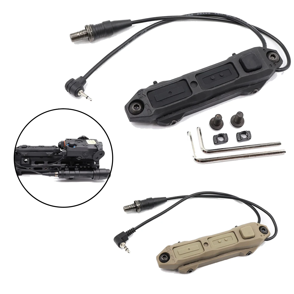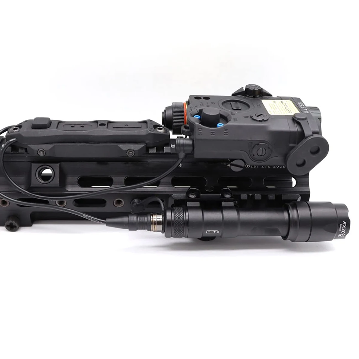➤ Interruptor dual de presión táctica: el interruptor dual remoto puede controlar la linterna y el láser al mismo tiempo, enchufe SF: para luces de reconocimiento de la serie M; 2,5 pines delgados: Para miras láser de la serie PEQ.