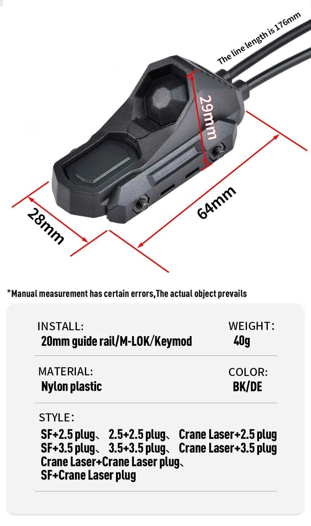 Interruptor de presión táctico Axon remoto de doble función trasera para PEQ-15 DBAL-A2 MAWL NGAL Laser M300 M600 arma Scout linterna
