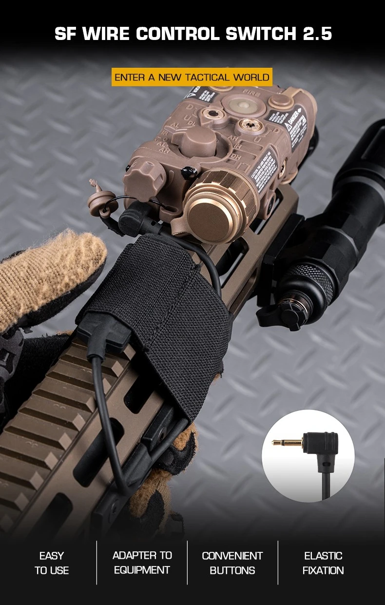 Interruptor táctico de línea de riel láser de luz PEQ, 2,5mm, linterna, arma, compacto, presión remota