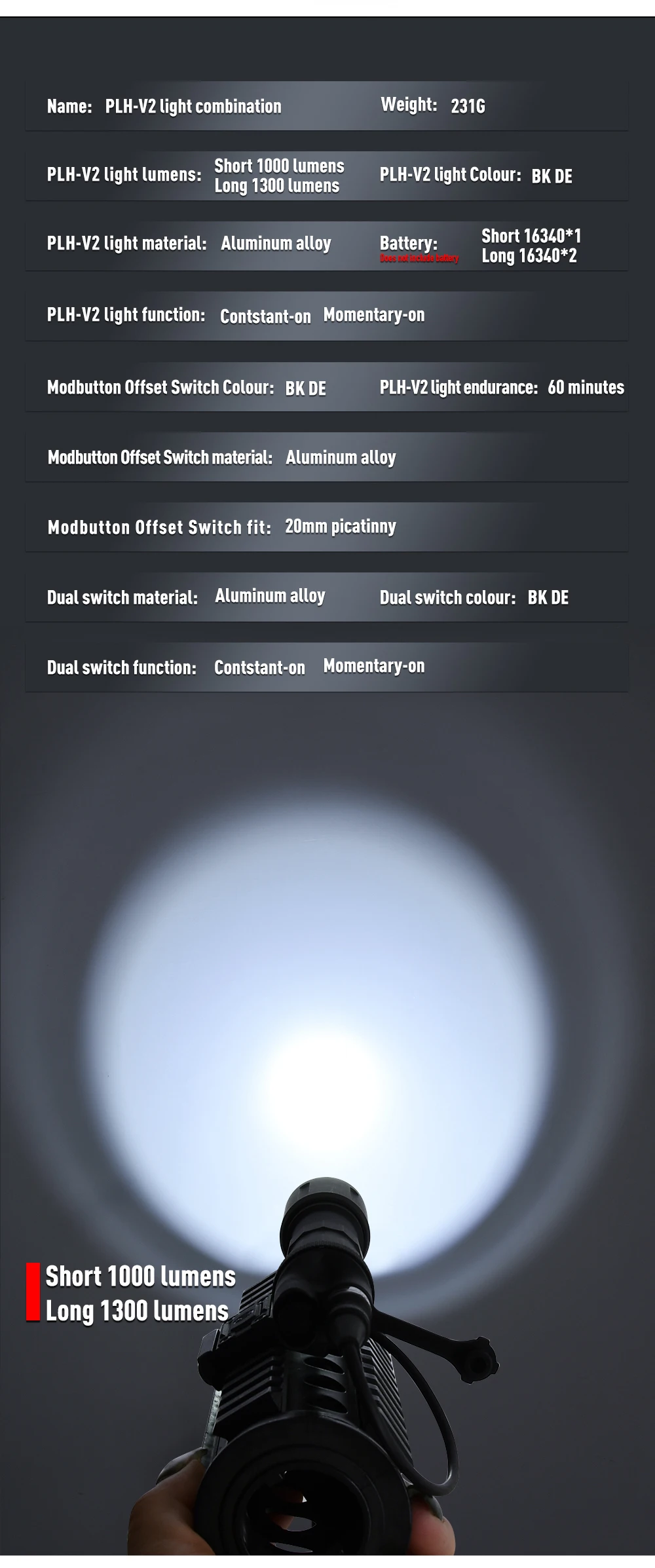 Botón de linterna táctica, interruptor trasero de Metal PLH-V2, luz para arma de caza, lámpara Scout de 1300 lúmenes con logotipo Original, montaje Offset
