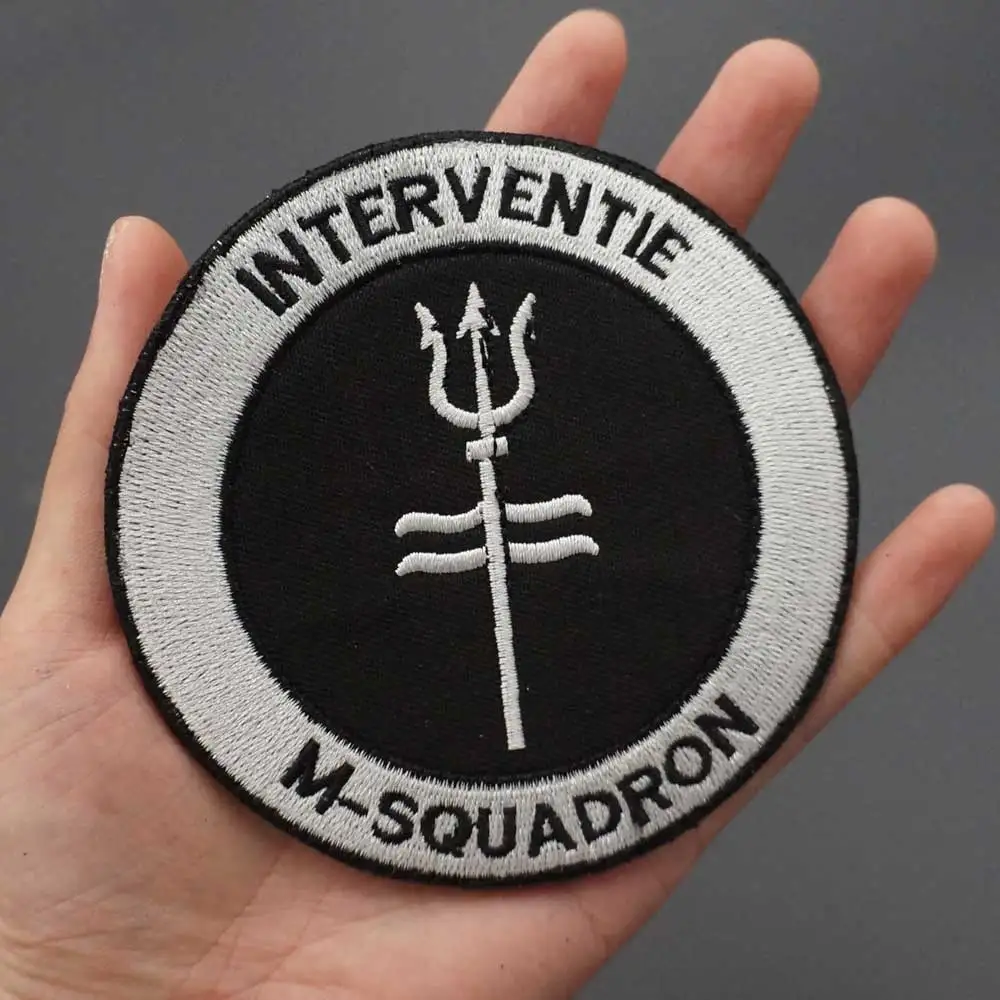 INTERVENTIE M-SQUADRON insignia bordada de moral militar táctica motocicleta caballero chaleco de cuero accesorios de decoración apliques