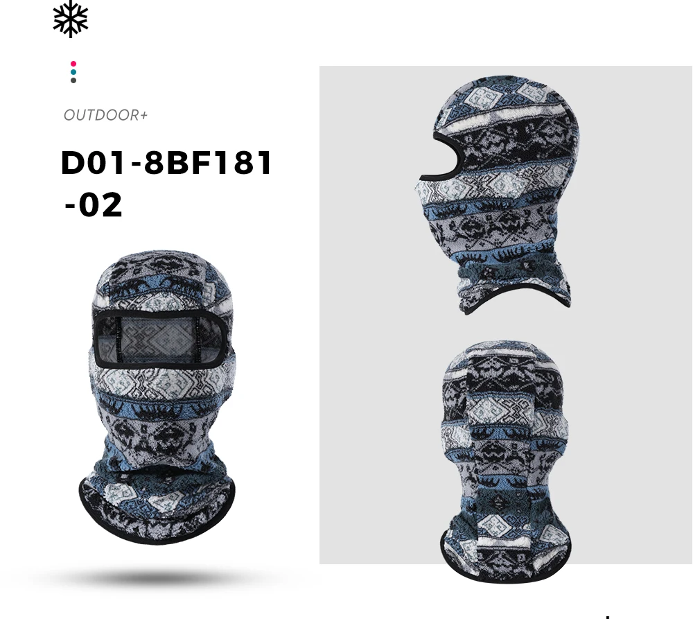 2.Las máscaras faciales integrales están diseñadas para mantener toda la cara, el cuello, las orejas y la cabeza calientes en temperaturas heladas.Proporciona la temperatura más agradable y cálida para usted.