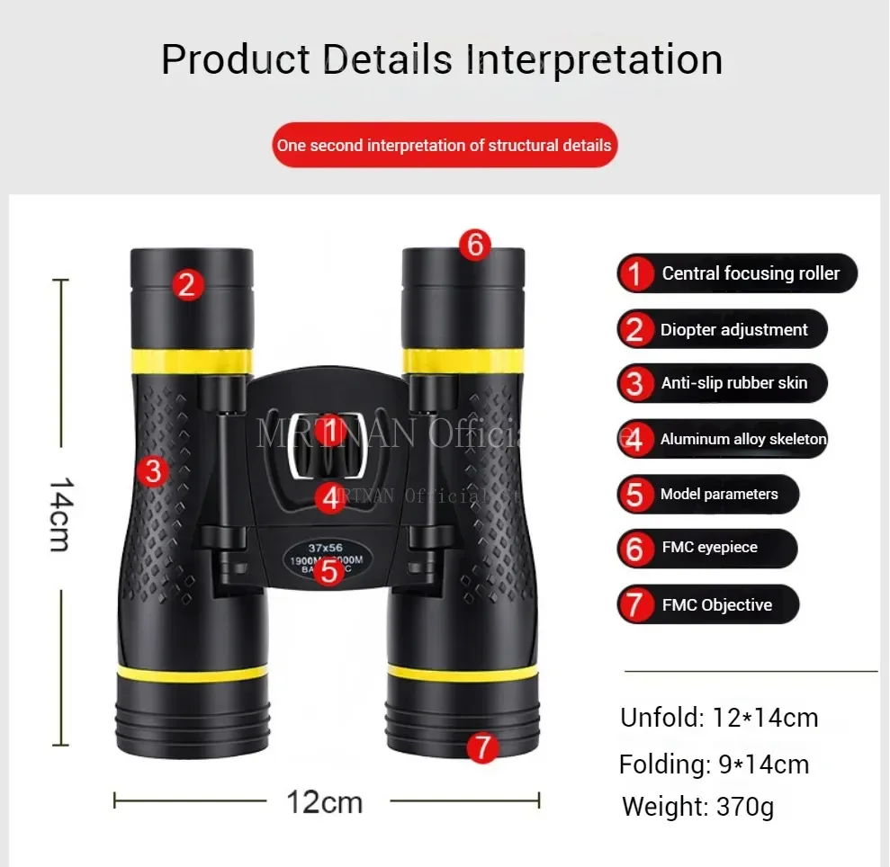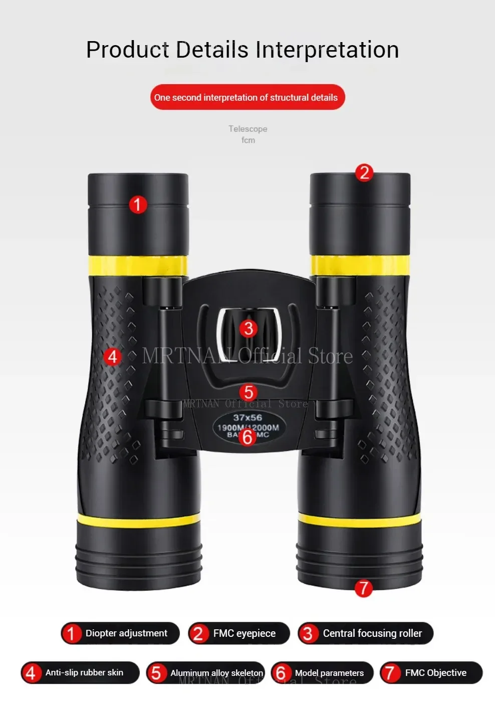 Binoculares 37x56 Telescopio HD profesional Potente prisma BAK4 de largo alcance para caza Camping al aire libre