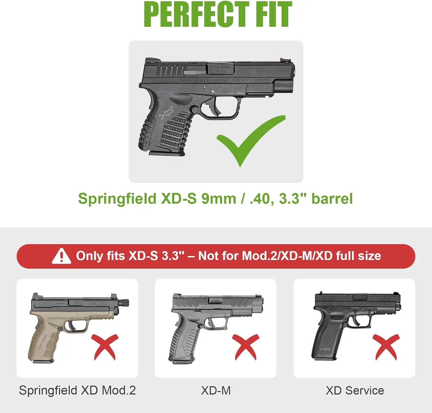 【A medida para Springfield XD-S 3.3''】La funda IWB moldeada a medida se adapta a Springfield XD-S 9 mm/.40 con cilindro de 3,3''.No compatible con la serie XD Mod u otras variantes XD.