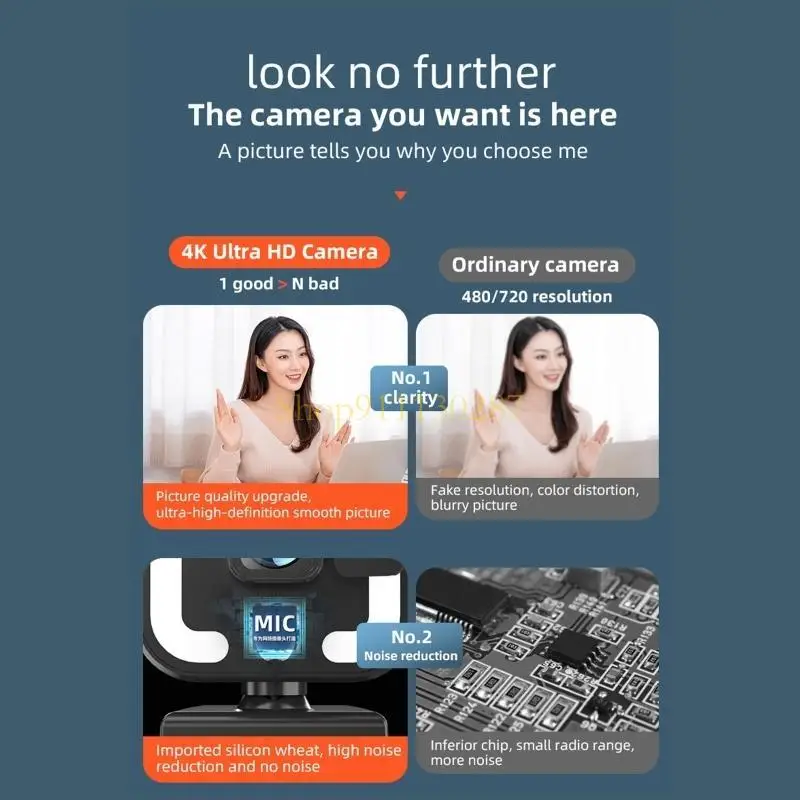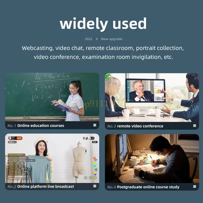 Base multifuncional, se puede colocar en el escritorio, fijar encima de la pantalla, colocar en un trípode.para múltiples sistemas operativos, y se puede utilizar con casi todos los software de videoconferencia.