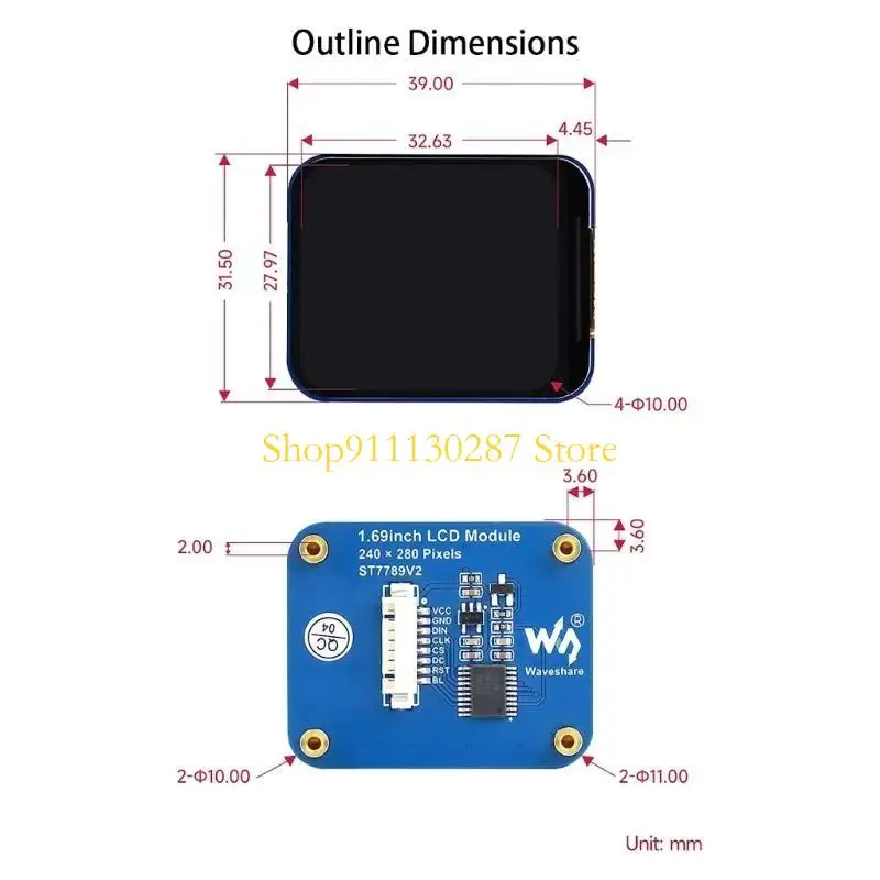 Características:Módulo de pantalla LCD de 1,69 pulgadas, admite resolución de 240 × 280, colores de pantalla de 262 K, efecto de visualización claro y colorido.