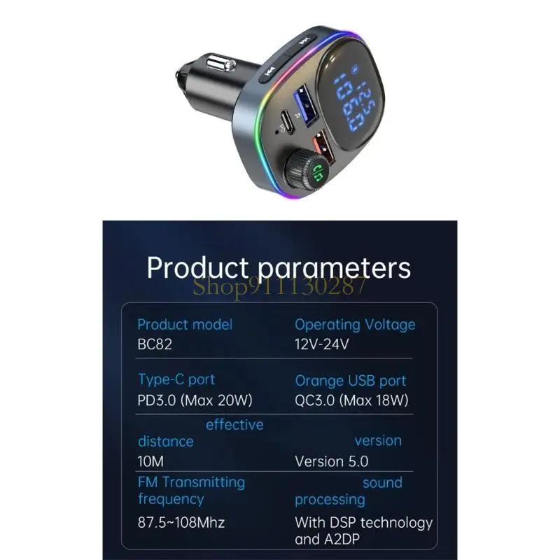 El paquete incluye:1 Unidad x transmisor FM BC82 compatible con Bluetooth 5,0