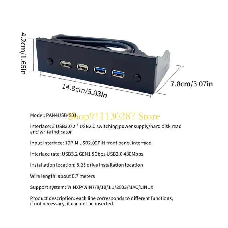 Debido al aumento de cantidad de dispositivos USB hoy en día, ¡los puertos USB del chasis no son suficientes para su uso!Puede utilizar este dispositivo para convertir directamente las interfaces USB de 19 pines + 9 pines en la placa en 2 interfaces USB 3,0 + 2 interfaces USB 2.0, y puede convertir los interruptores en el panel e instalarlos en una posición de unidad óptica inactiva.Esto proporciona interfaces USB frontales y ya no necesita agacharse para enchufar el cable, ¡lo cual es muy conveniente!