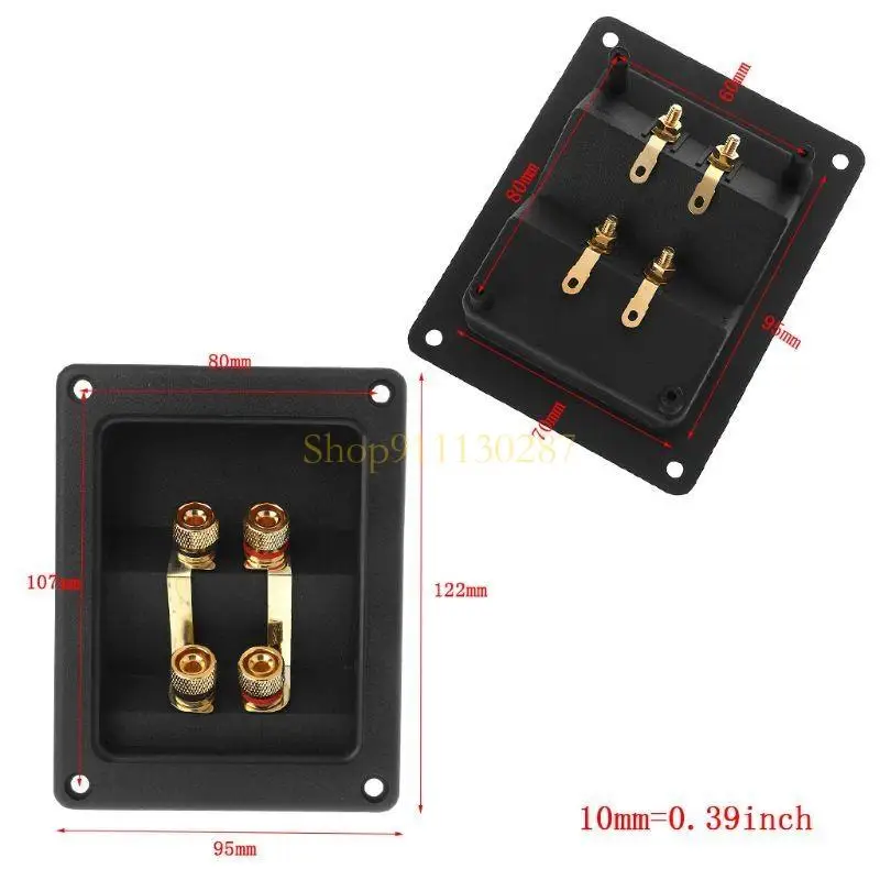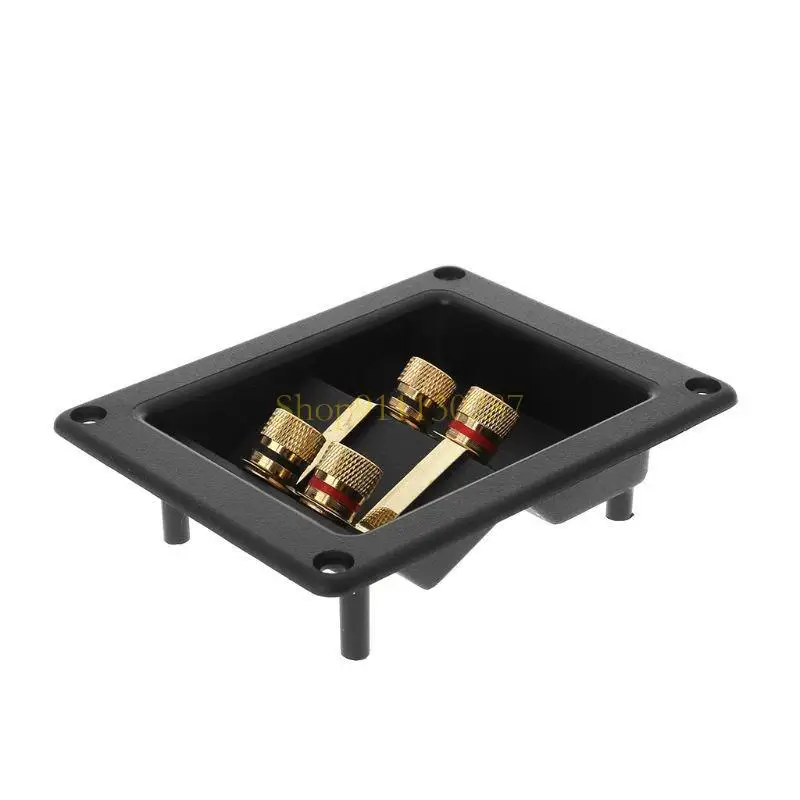 Terminal de altavoz de montaje empotrado con dos pares de postes de encuadernación chapados en oro.