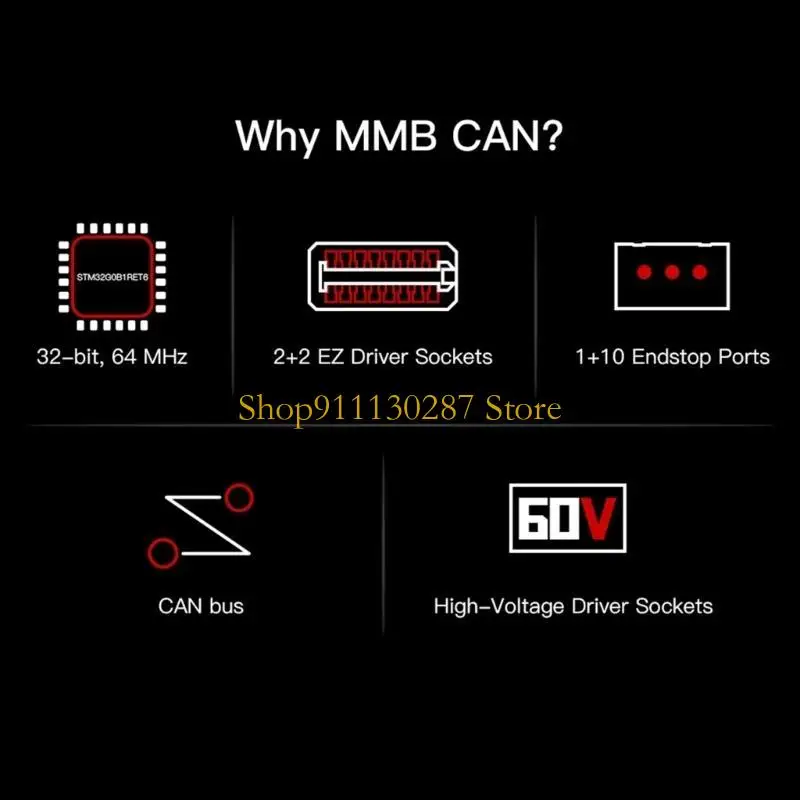 MMB CAN Fearures: 32 bits, 64 MHz con tomas de controlador de 2+2EZ; 1+10 puertos Endstop Bus CAN