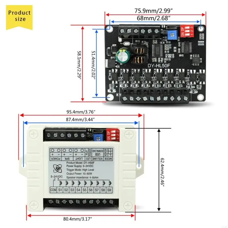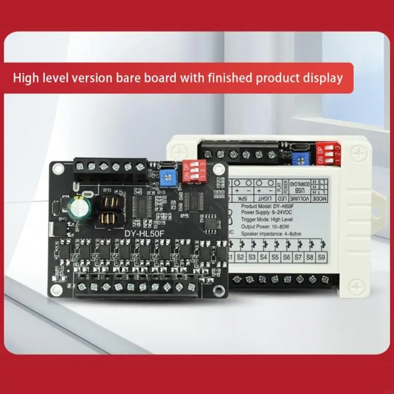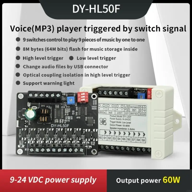 El módulo de disparo de transmisión de voz L50F con una amplia gama de 9-24 VCC. Este módulo está construido con materiales que garantizan durabilidad y confiabilidad.