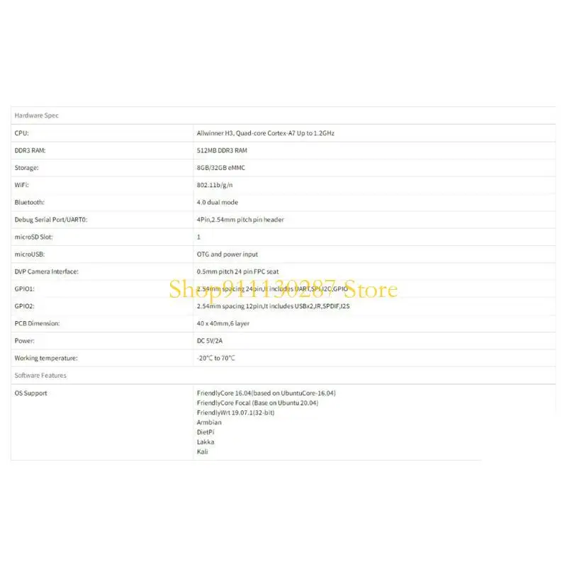 CPU: AllwinnerH3, Quadcores CortexA7 Hasta 1,2 GHz