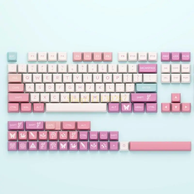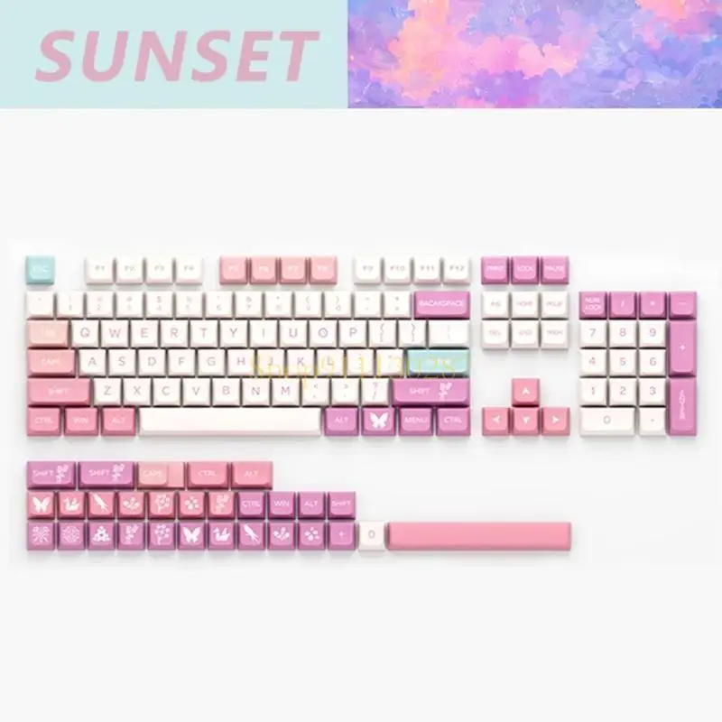 Las teclas con tema Pink Sunset hacen que sus teclados comunes sean especiales y texturizados.