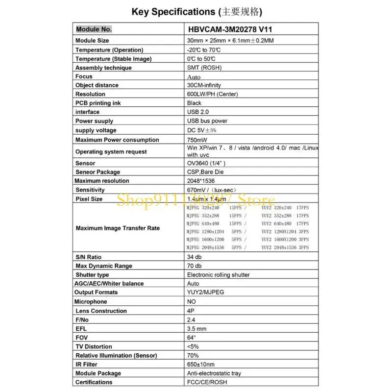 Rendimientos confiables Equipado con el chip fotosensible de alta definición OV3640, este módulo de cámara garantiza imágenes consistentes y nítidas.Adecuado para diversas necesidades de fotografía y grabación de vídeo.