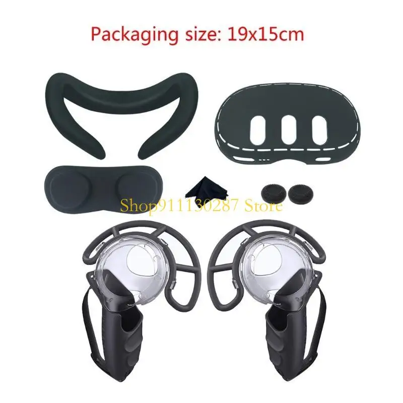 El paquete incluye:1 juego x funda protectora para máscara a prueba de sudor Meta Quest 3 + cubierta frontal de silicona + cubierta de lente + cubierta de goma suave cómoda + juego anticolisión)
