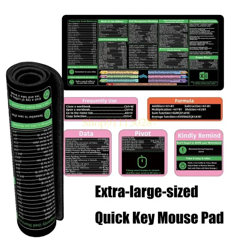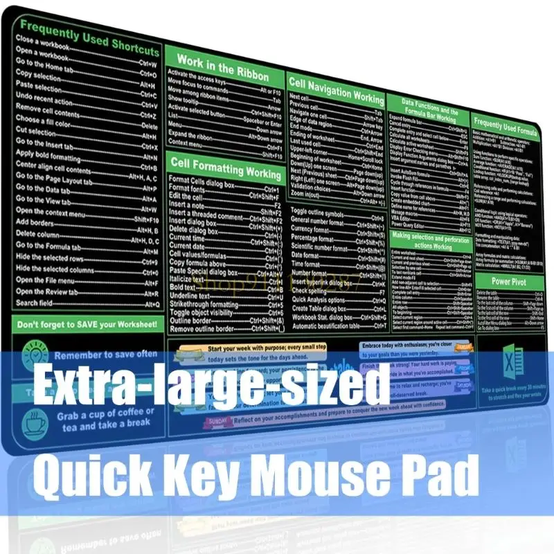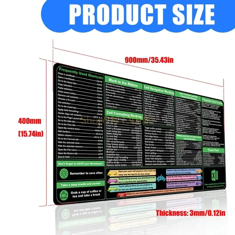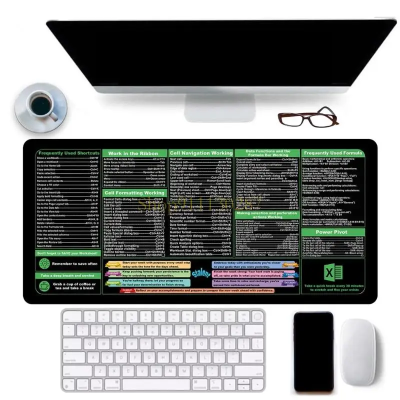 Características:OOTDTYMejora su productividad con la almohadilla de escritorio Excels Cheats Sheet, que presenta un tamaño grande que brinda un amplio espacio tanto para el mouse como para los teclados, lo que la convierte en un accesorio esencial para cualquier oficina o juego.