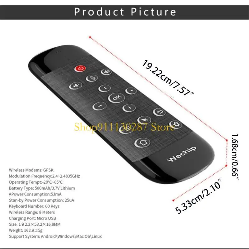 El mouse aéreo, el teclado inalámbrico y el control remoto de aprendizaje están todos. Es plug and play, simple y fluido.