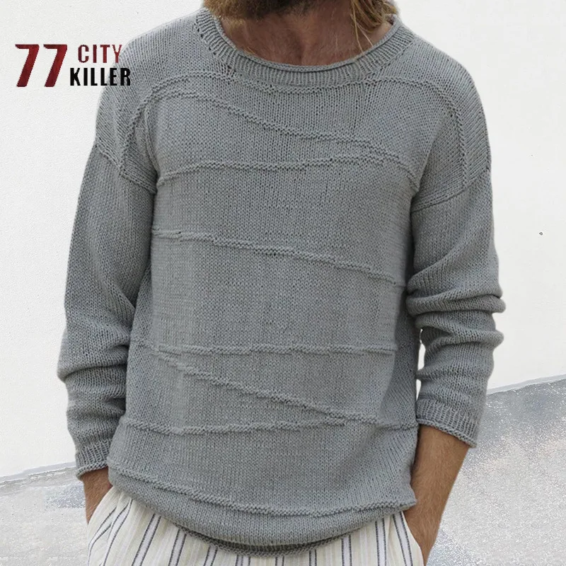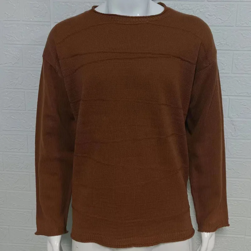 Jersey de cuello redondo de Color sólido para hombre, camisa de manga larga de punto suelta, suéter militar para deportes al aire libre, moda informal