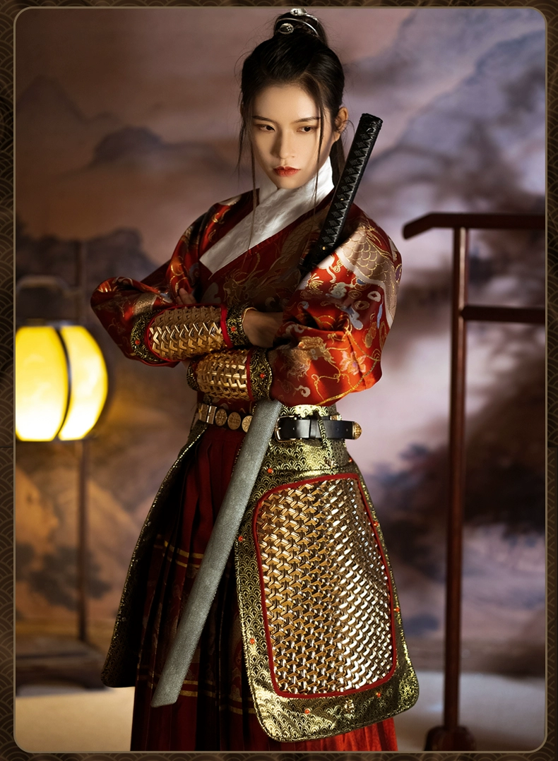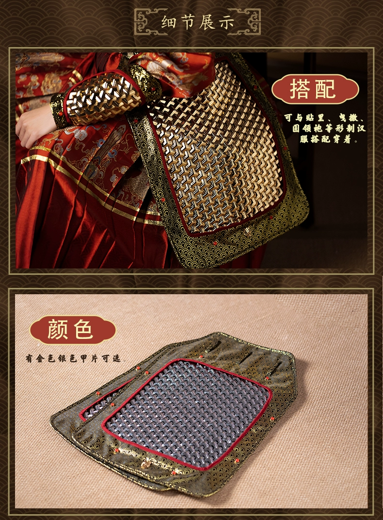 Jiaqushan Wen Jia Pian Armor Arm/falda de armadura se puede combinar con Hanfu Flying Fish Dress, bata de cuello redondo