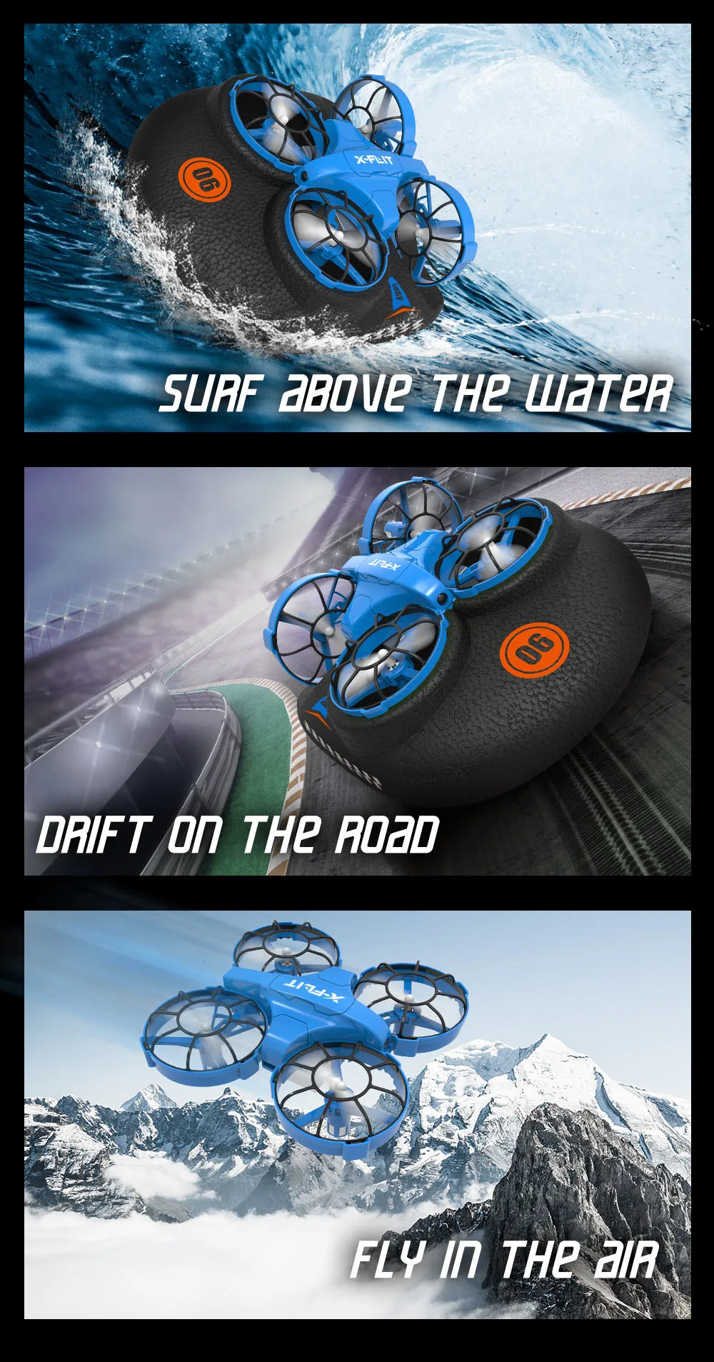 JJRC-Dron de 4 rotores de 2,4G con múltiples modos de juego, 360 °, juguete para niños, mar, tierra y aire, tres en uno