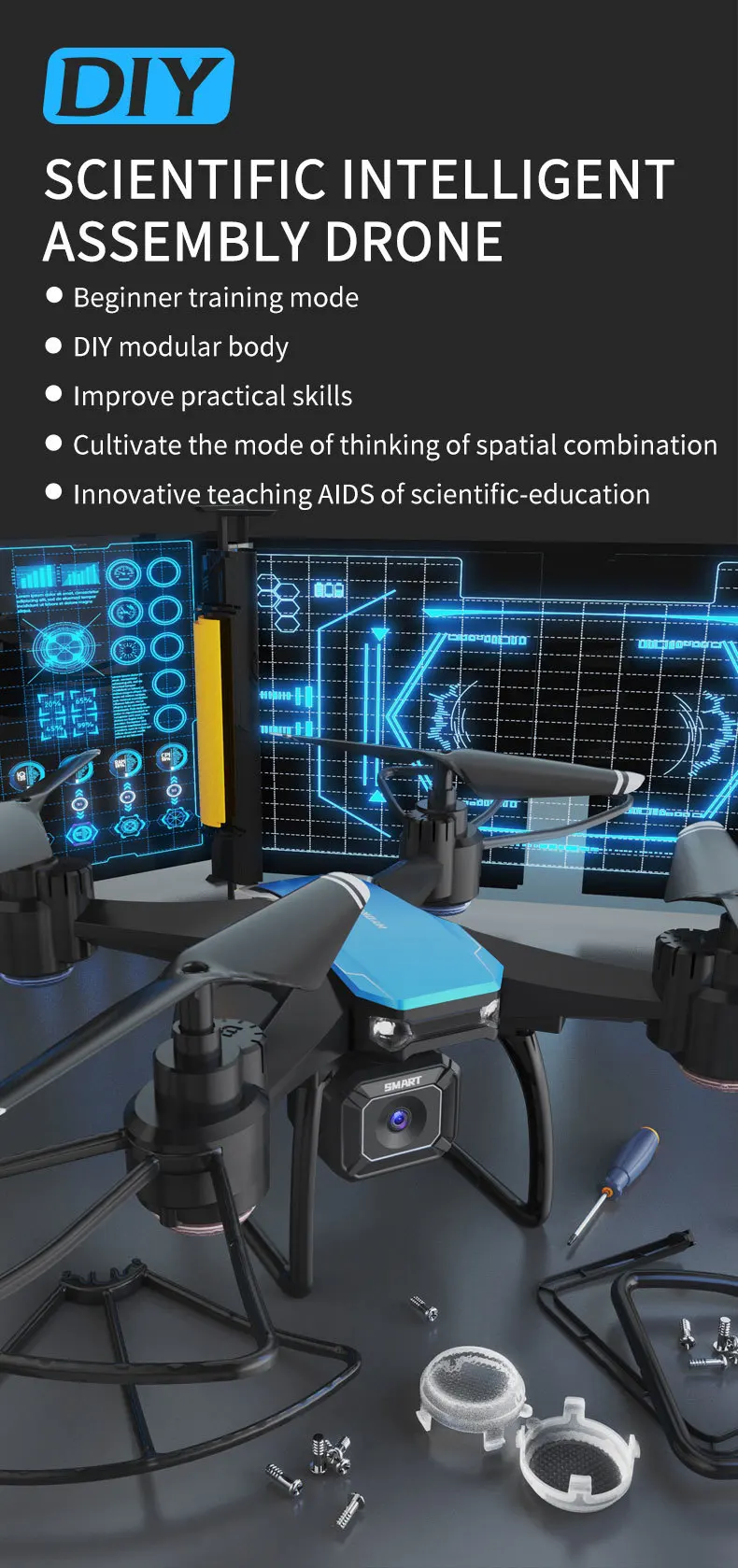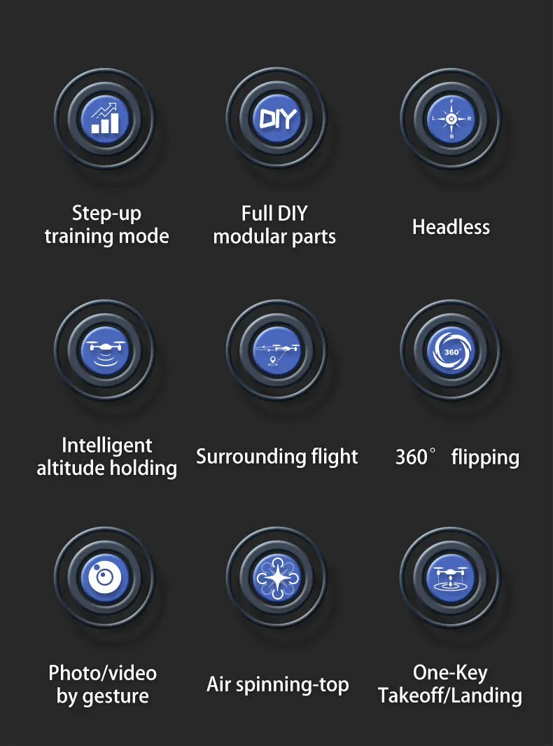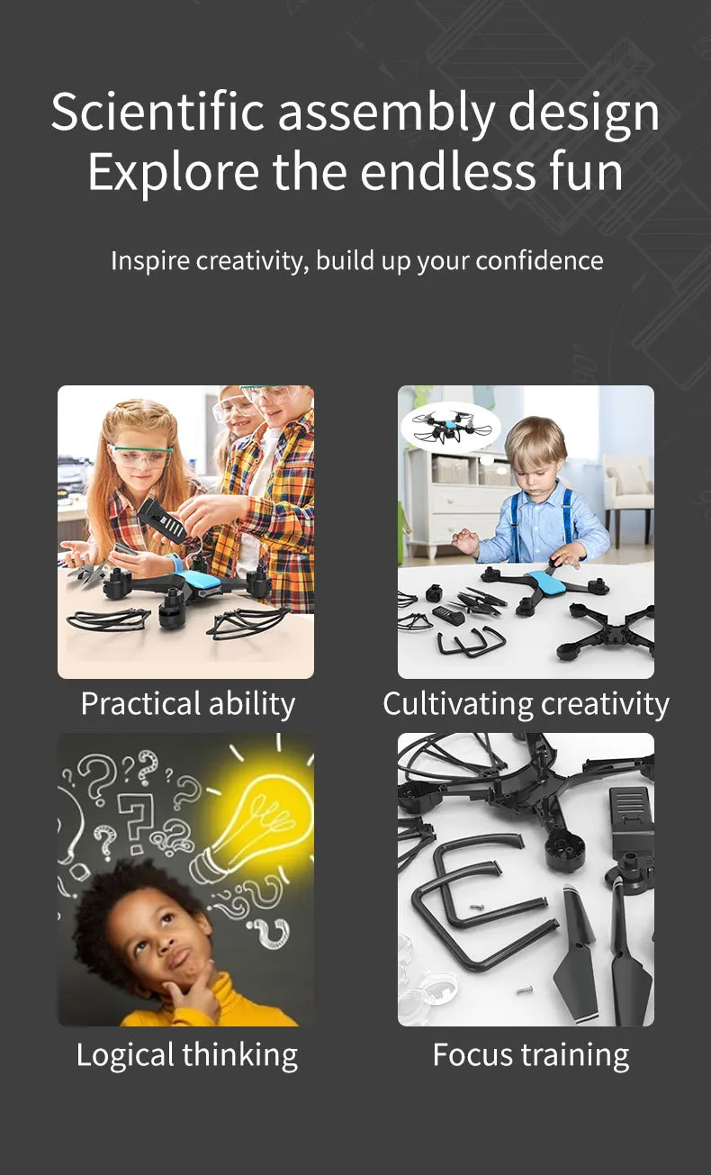 JJRC-Dron H108 avanzado para niños, Drone de bricolaje, rollo de 360 °, de una tecla despegue y aterrizaje, giro de vuelo, 4-rotor, 4K, cámara Dual, Video, juguetes para niños
