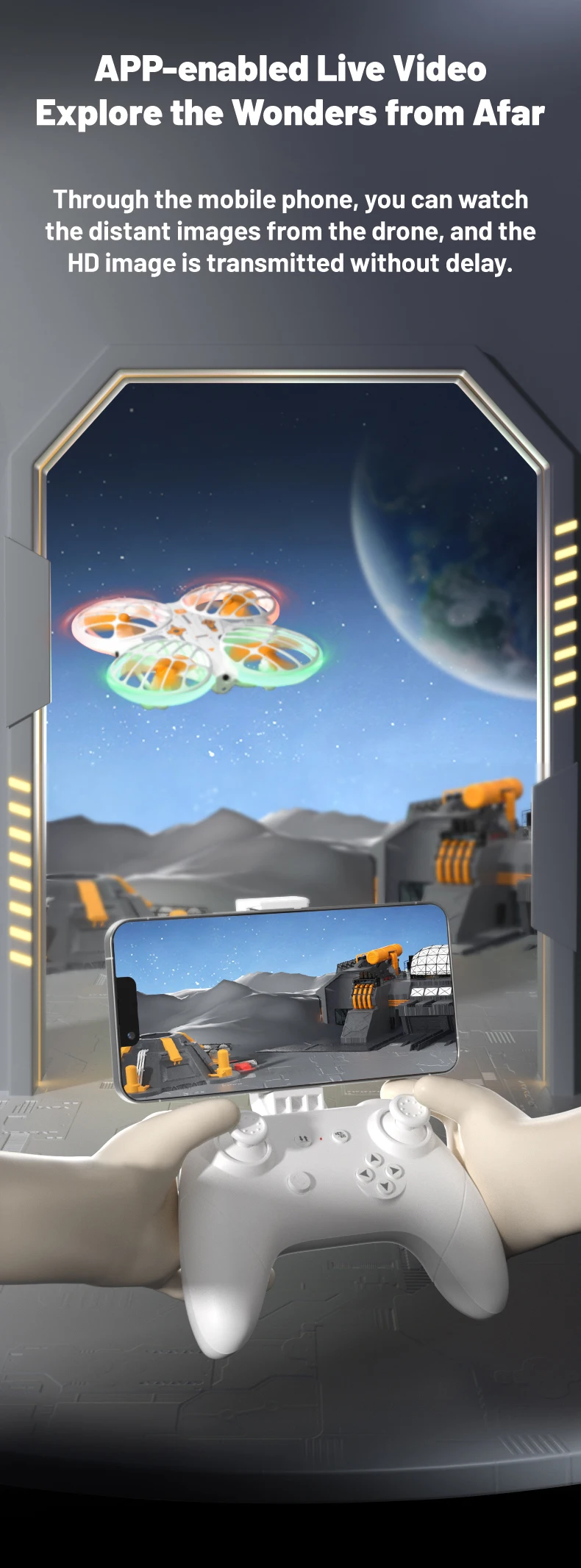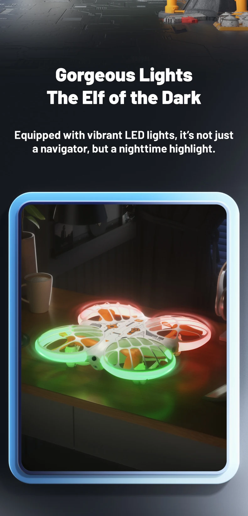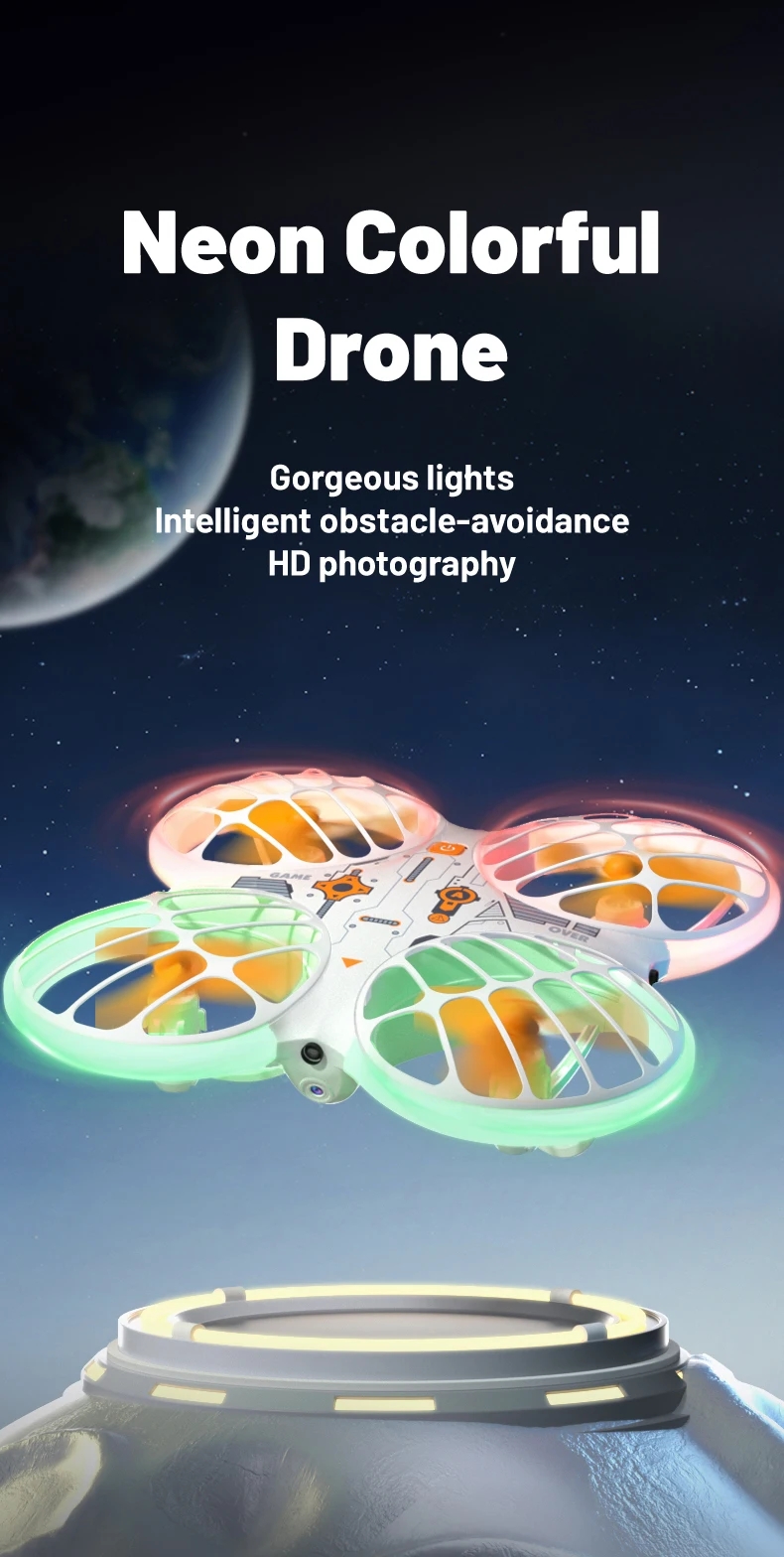 JJRC-Dron radiante de neón H122, dispositivo de despegue y aterrizaje con un clic, función de evitación de obstáculos rodante de 360 °, cámara de vídeo aérea