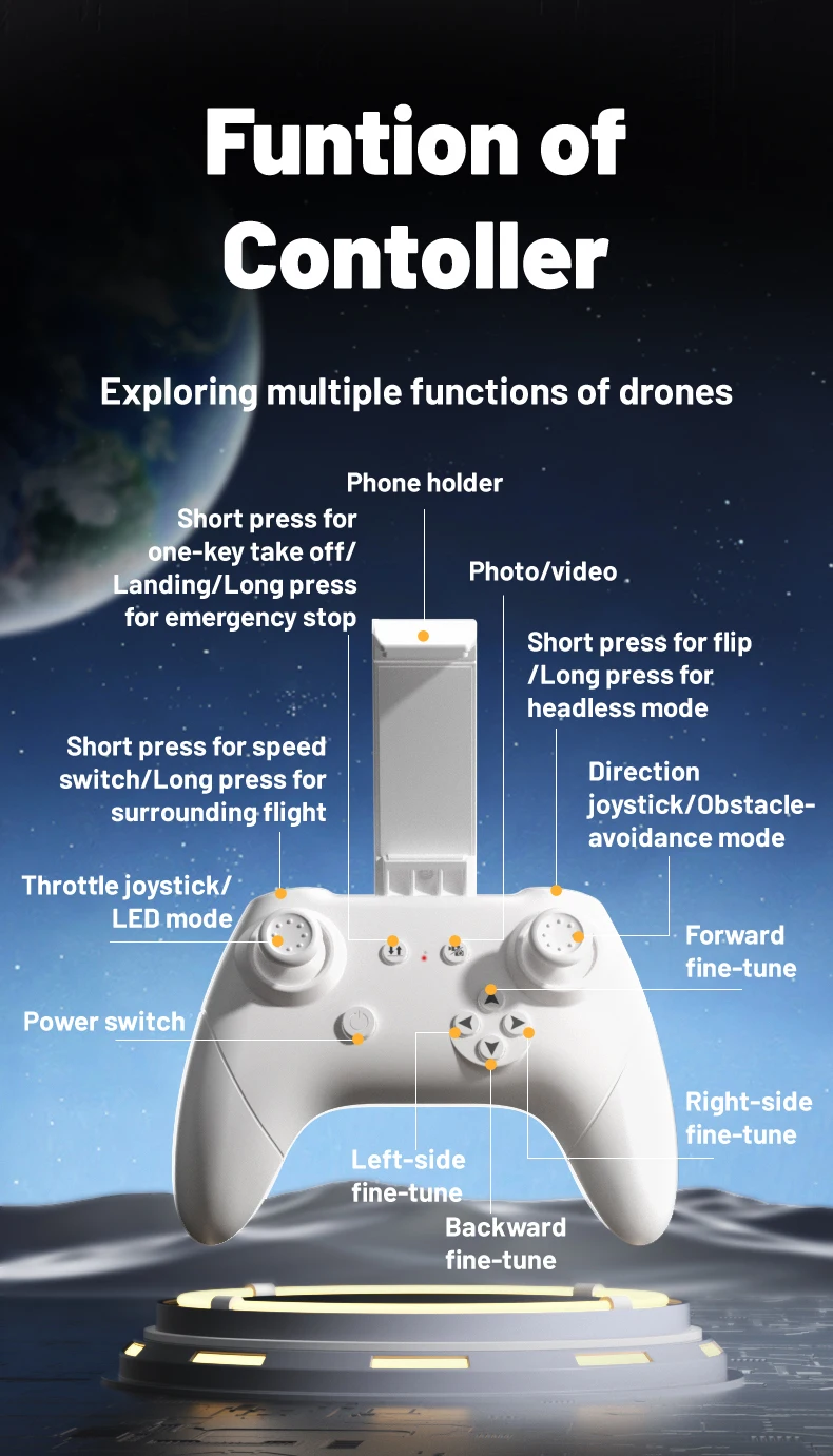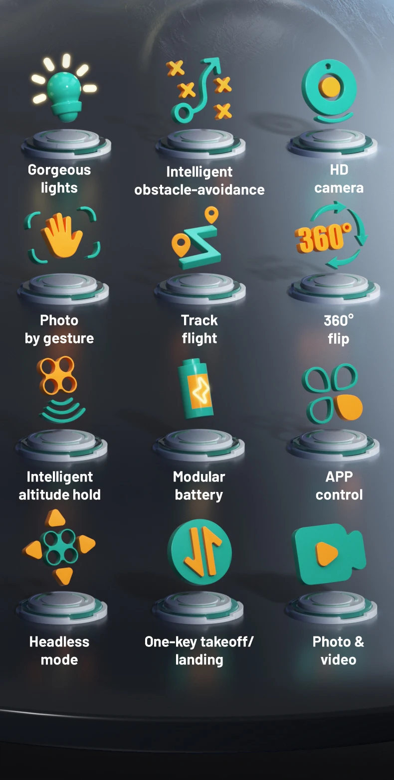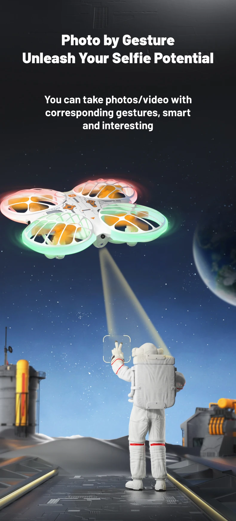 JJRC-Dron radiante de neón H122, dispositivo de despegue y aterrizaje con un clic, función de evitación de obstáculos rodante de 360 °, cámara de vídeo aérea