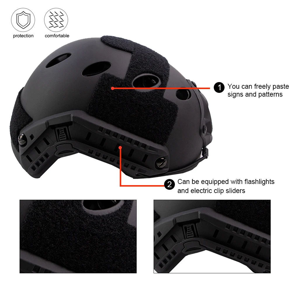 Los cascos de alta velocidad JOAXOR son el complemento perfecto para cualquier carga de airsoft. Siguiendo el modelo de los cascos utilizados por los operadores de las Fuerzas Especiales, la construcción cómoda y ligera de JOAXOR ofrece una protección adecuada para todos los escenarios de combate de airsoft y, al mismo tiempo, minimiza la fatiga. Gracias a su modularidad y diseño táctico elegante, estos se están convirtiendo rápidamente en el nuevo casco favorito entre los airsoft.