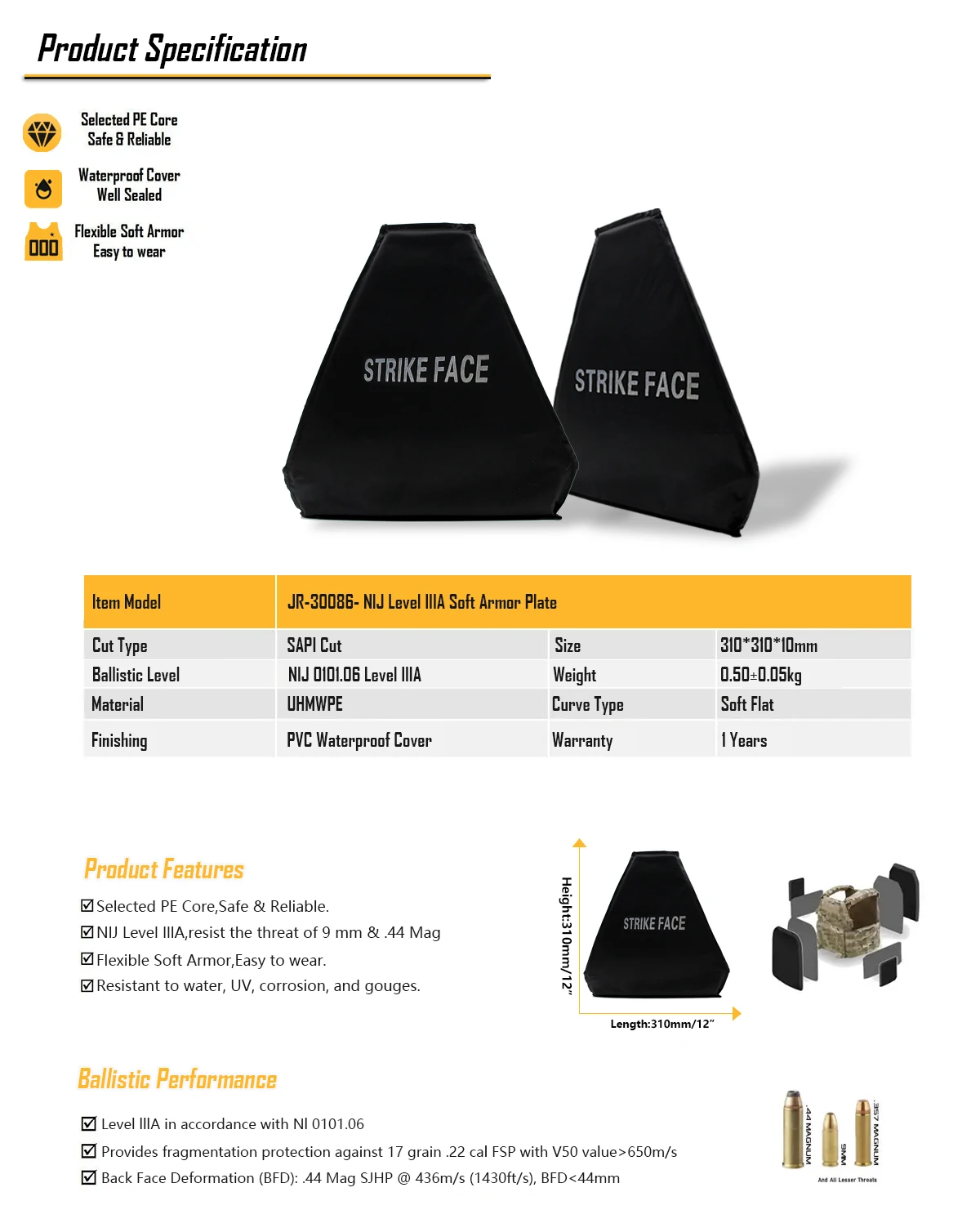 This bulletproof plate can provide a protection of Level IIIA in accordance with NIJ standard-0101.06