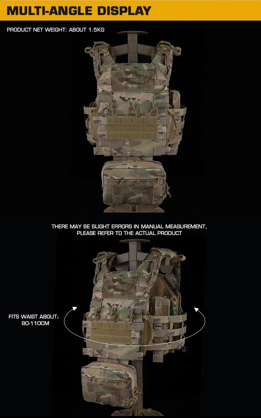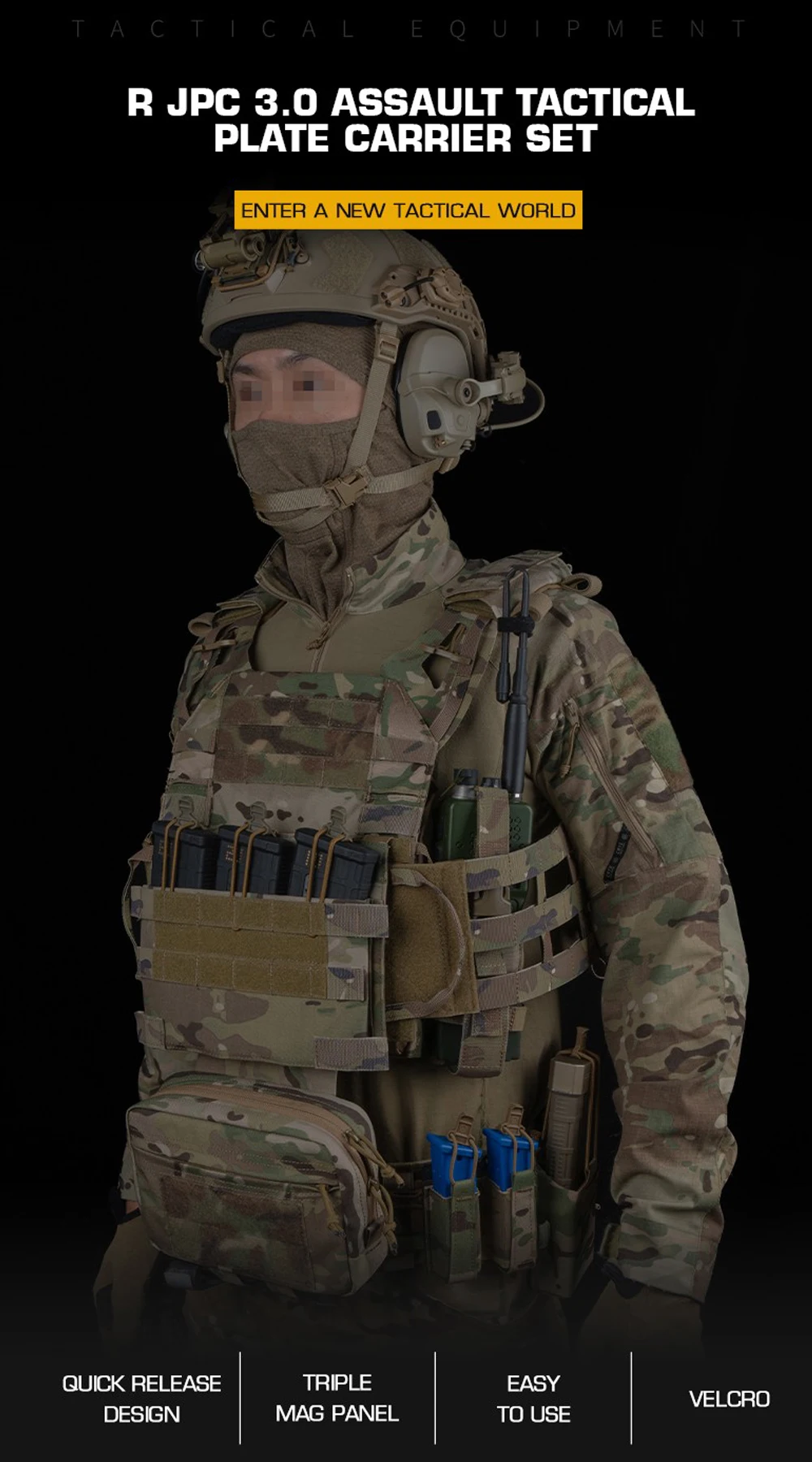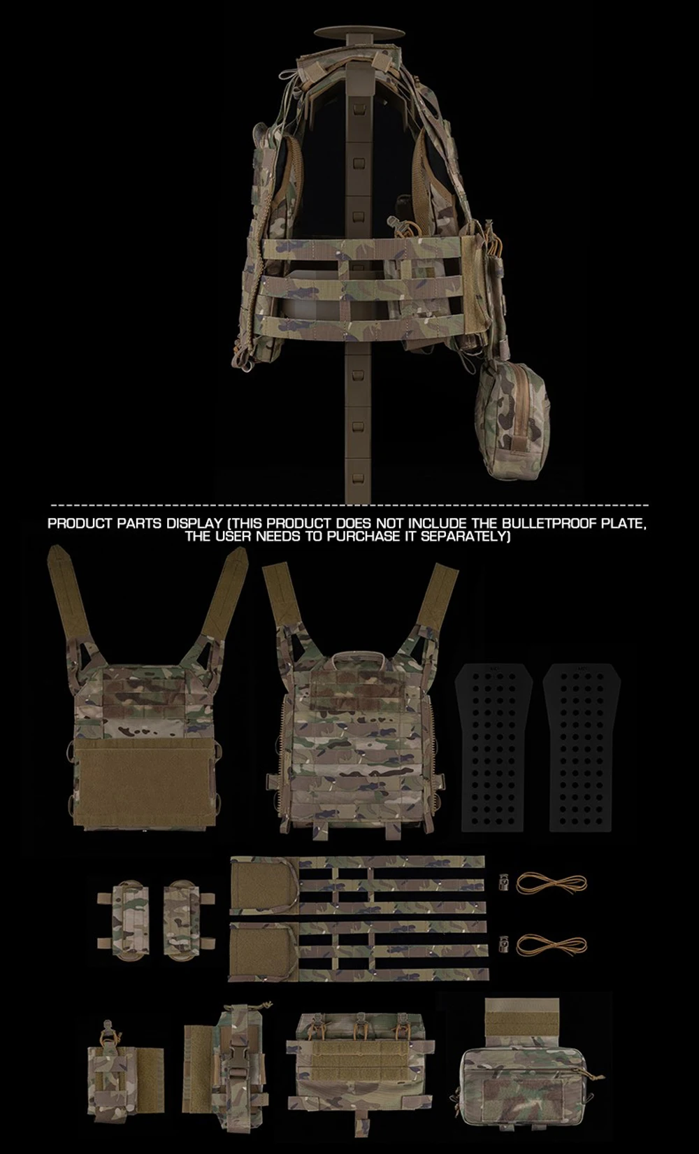 Nombre del producto: Juego de soporte de placa táctica de asalto JPC 3.0 serie R Número de artículo.:VE-106 Tamaño del producto: 48*30*10cm Peso neto del producto: 1,5 KG Peso bruto del producto: 2,16 KG Color del producto: negro mate/gris lobo/verde Ranger/marrón coyote/MC/MCBK Material principal: tela Cordura. Escena aplicable: caza, deportes al aire libre y otros juegos tácticos de Airsoft, etc.