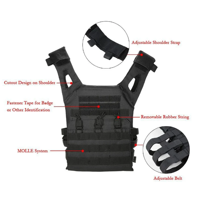 Armadura corporal de tela Oxford 600D, chaleco de caza Molle ajustable, chaleco portador de placa Molle ligero, equipo de jungla repelente al agua