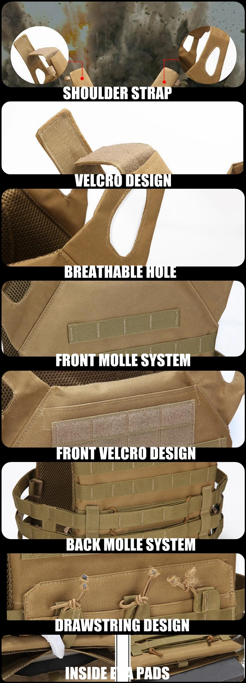 ¡Sensación cómoda 100% nueva! Color: como muestra la imagen Material: tela Oxford Peso: 1000g Tamaño: tamaño de la placa de protección (largo x ancho x grosor):33x26x2cm (Unidad: CM) Conversión de tamaño: 1 pulgada=2,54 cm o 1cm=0.393 pulgadas, medición Manual, error de 1-2cm. Ocasión adecuada: camping al aire libre, caza, entrenamiento y mucho más.