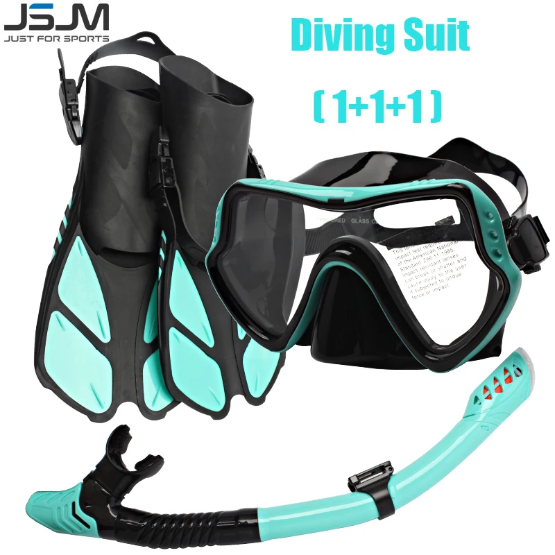 JSJM 1 + 1 + 1 máscara de buceo profesional, equipo de gafas de buceo HD antiniebla, máscara de buceo bajo el agua, aletas de esnórquel
