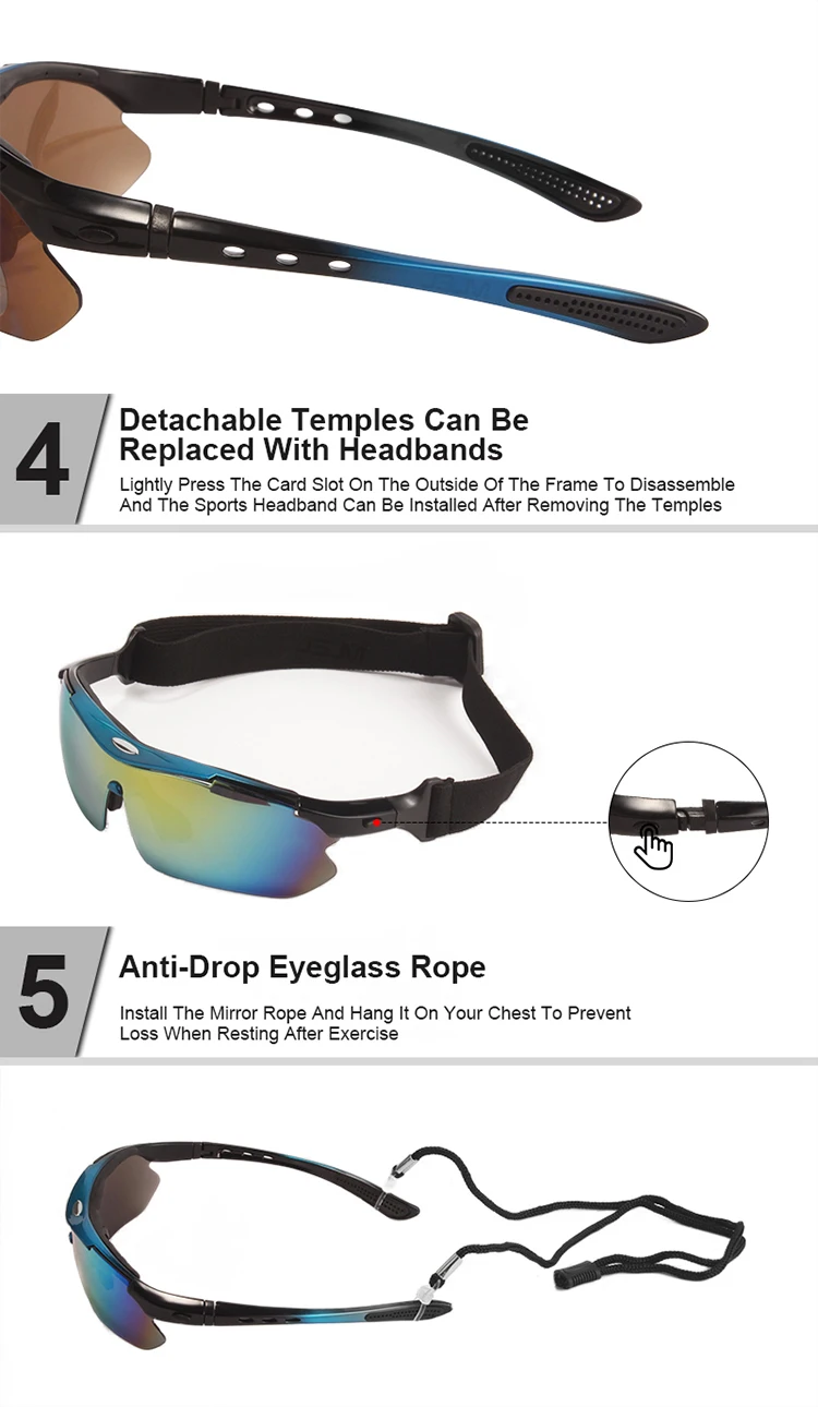 JSJM-gafas deportivas profesionales polarizadas para hombre, gafas de sol para ciclismo de carretera, gafas para bicicleta de montaña, gafas con 5 lentes
