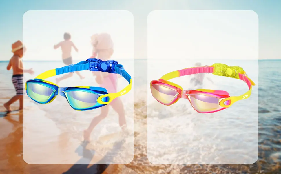 Buenas gafas para nadar, el set incluye tapones para los oídos, clip nasal y bolsa de almacenamiento. Cierre trasero conveniente.