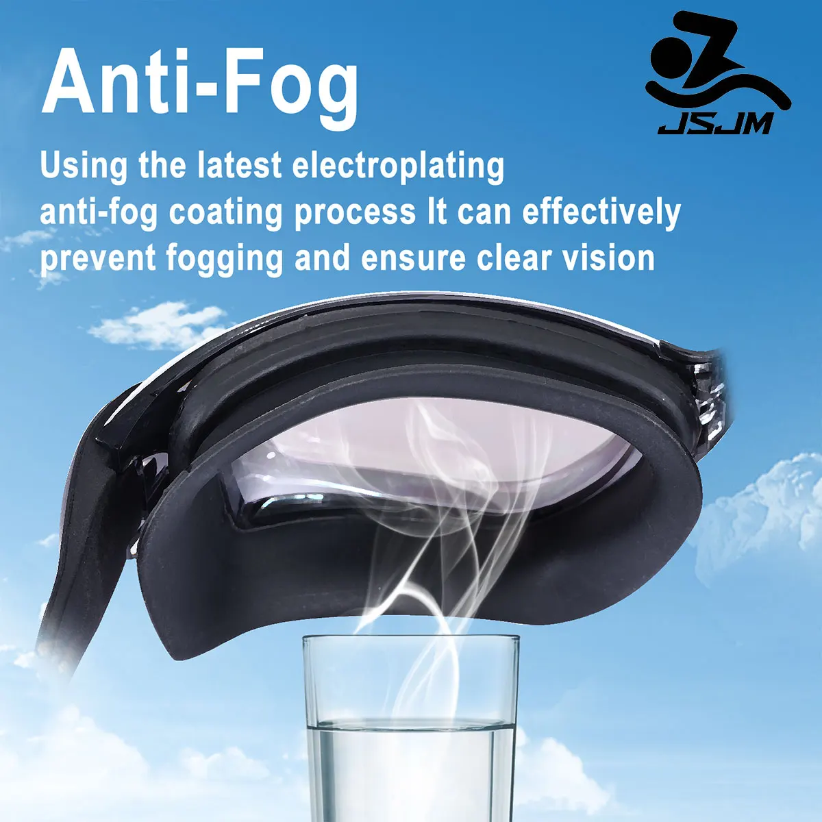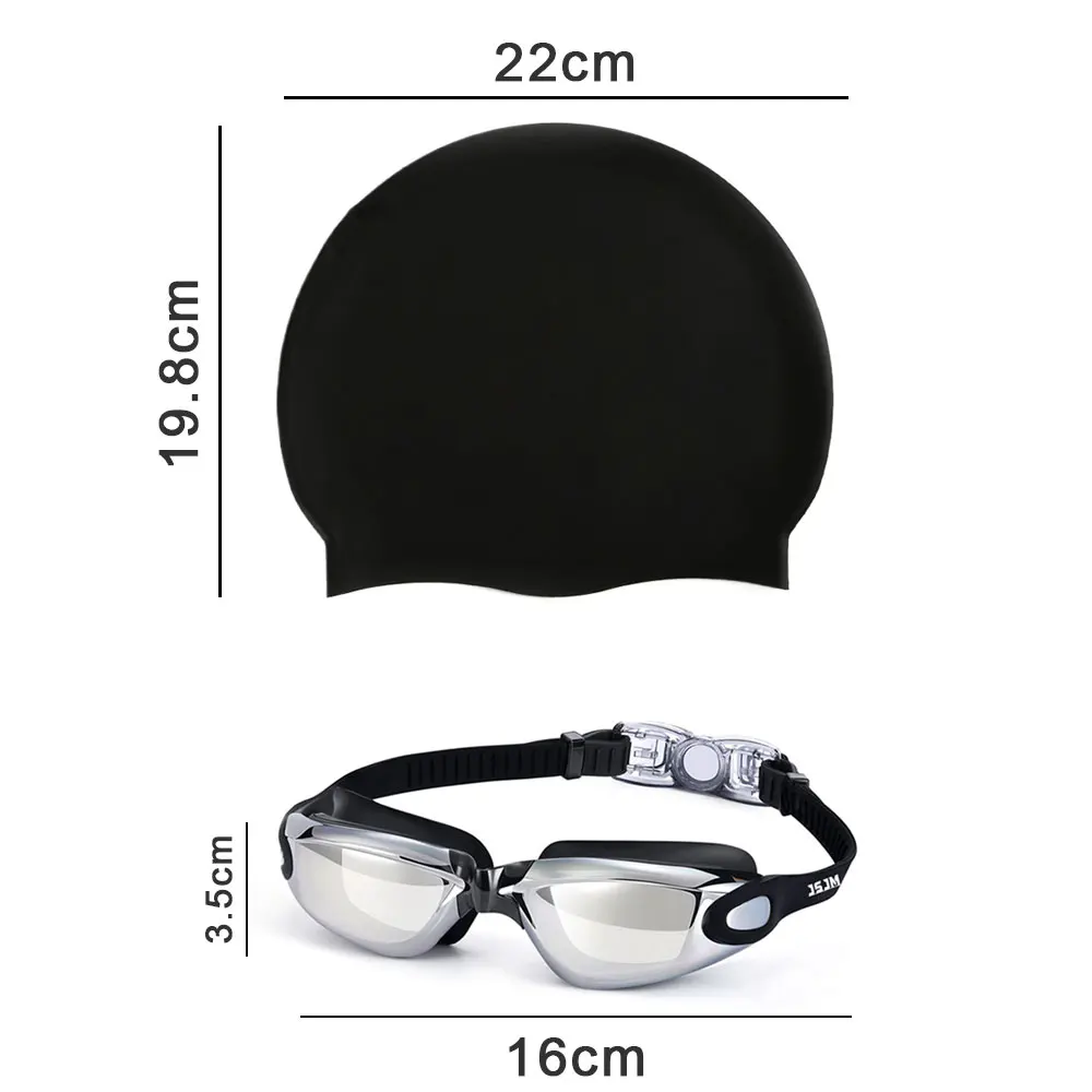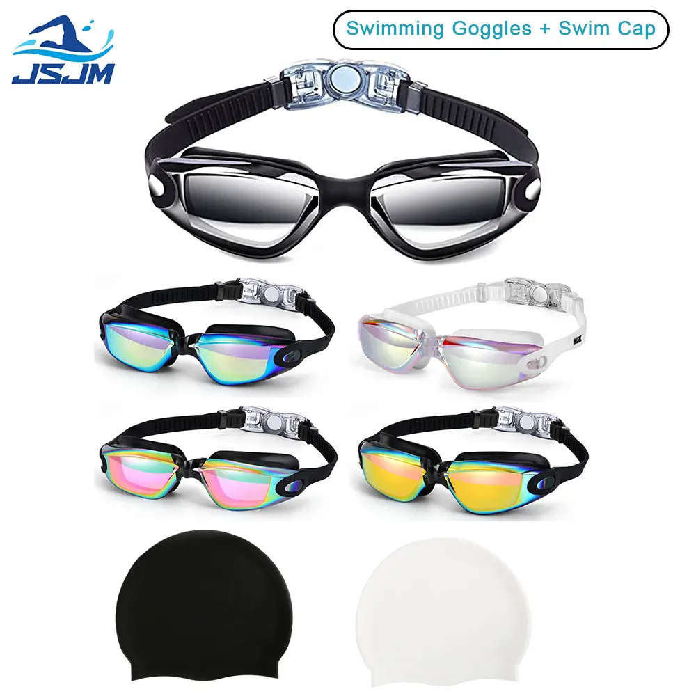 JSJM Gafas de natación profesionales unisex con antivaho, protección UV y diseño impermeable + gorro de natación para adultos - para hombres y mujeres