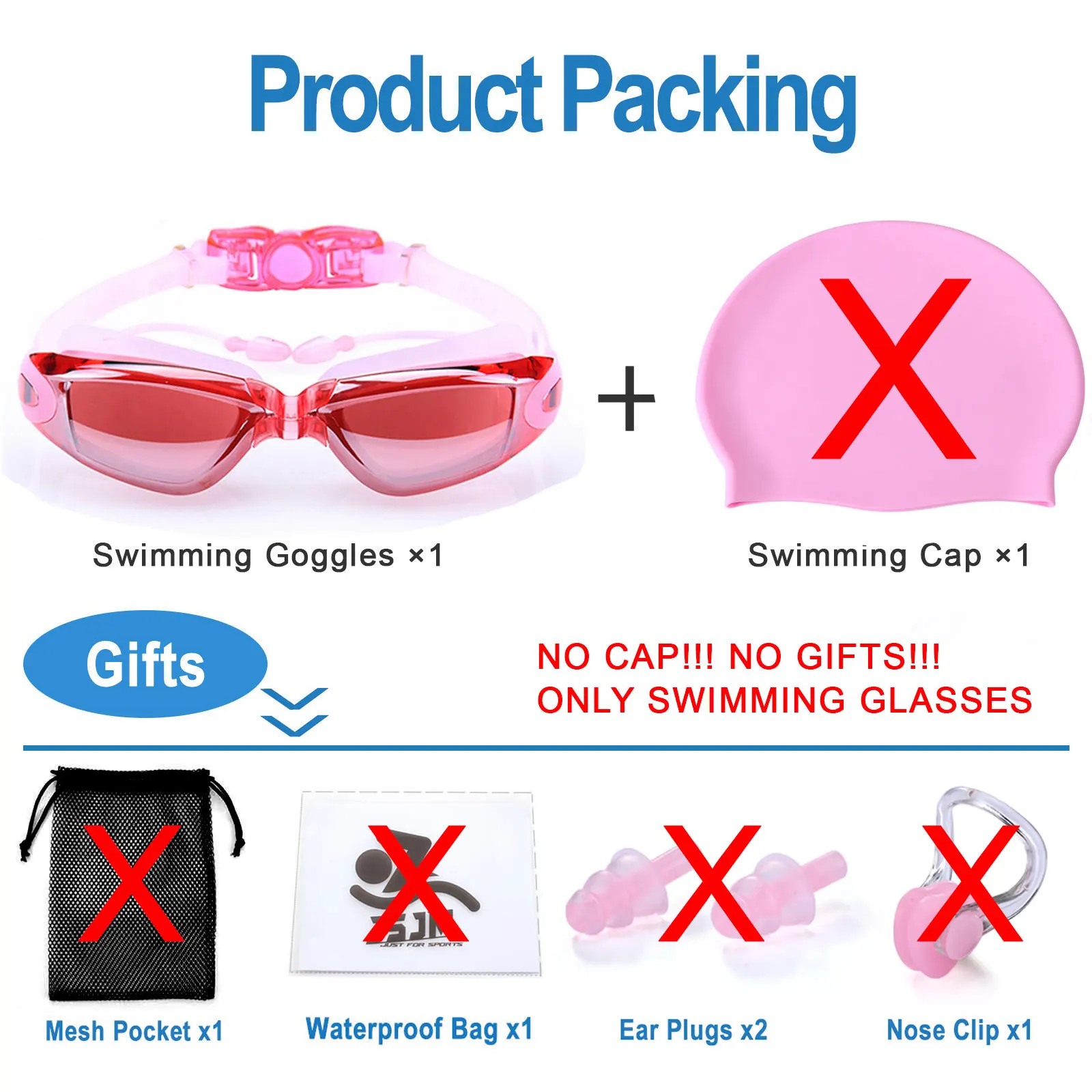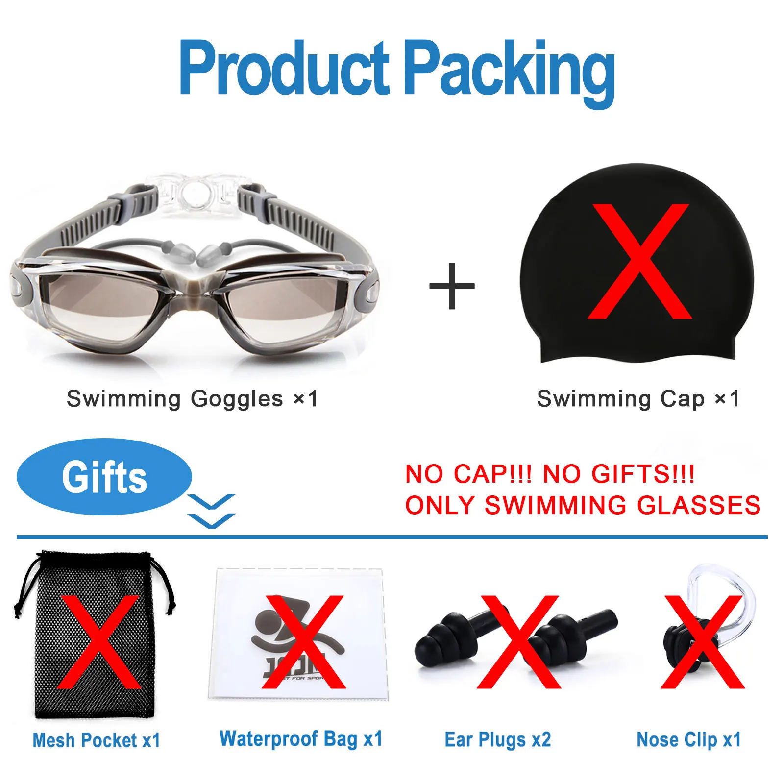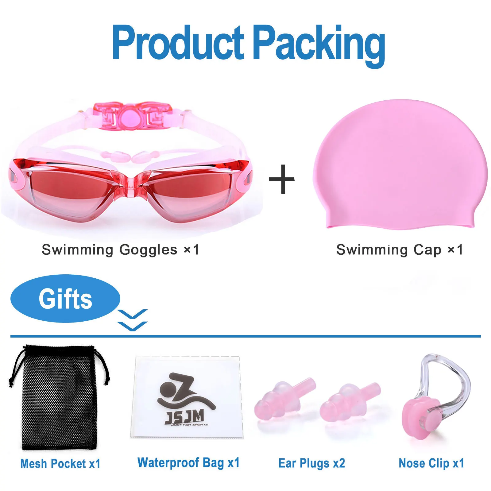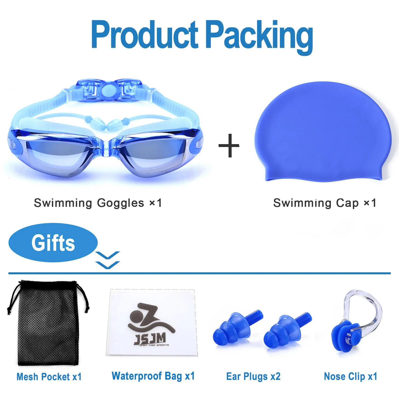 JSJM Gafas de natación profesionales unisex con antivaho, protección UV y diseño impermeable + gorro de natación para adultos - para hombres y mujeres