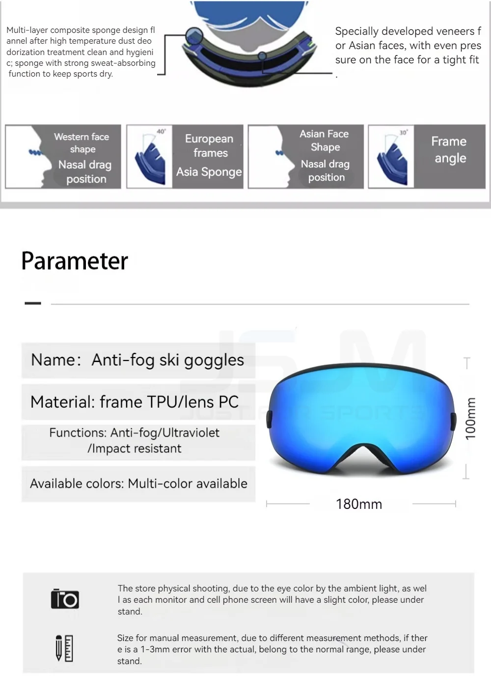 JSJM-Juego de gafas de esquí profesionales para hombre y mujer, lentes antiniebla UV400 para Snowboard, motos de nieve, Navidad, Año Nuevo, el mejor regalo