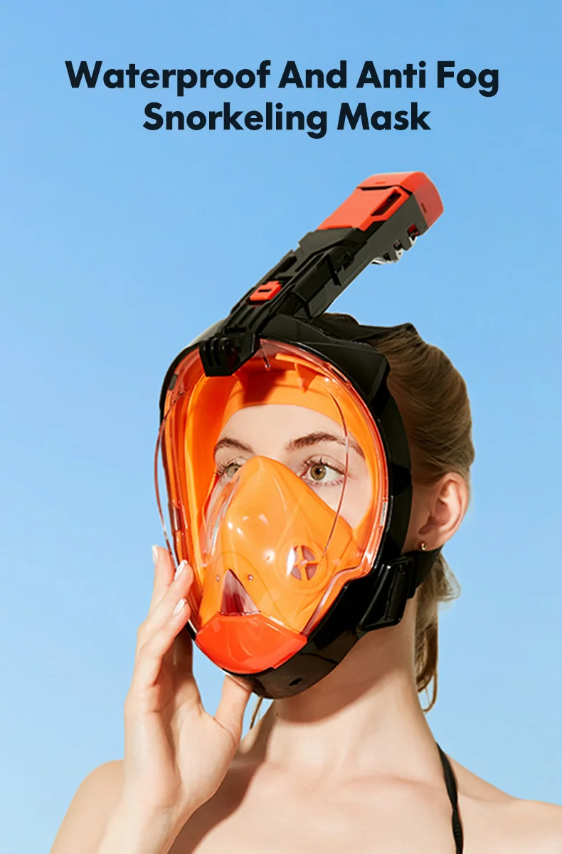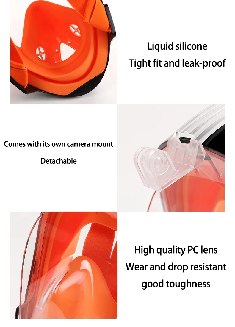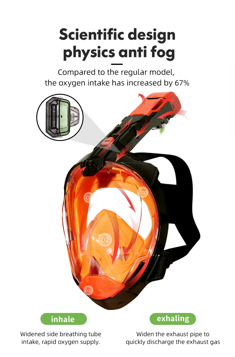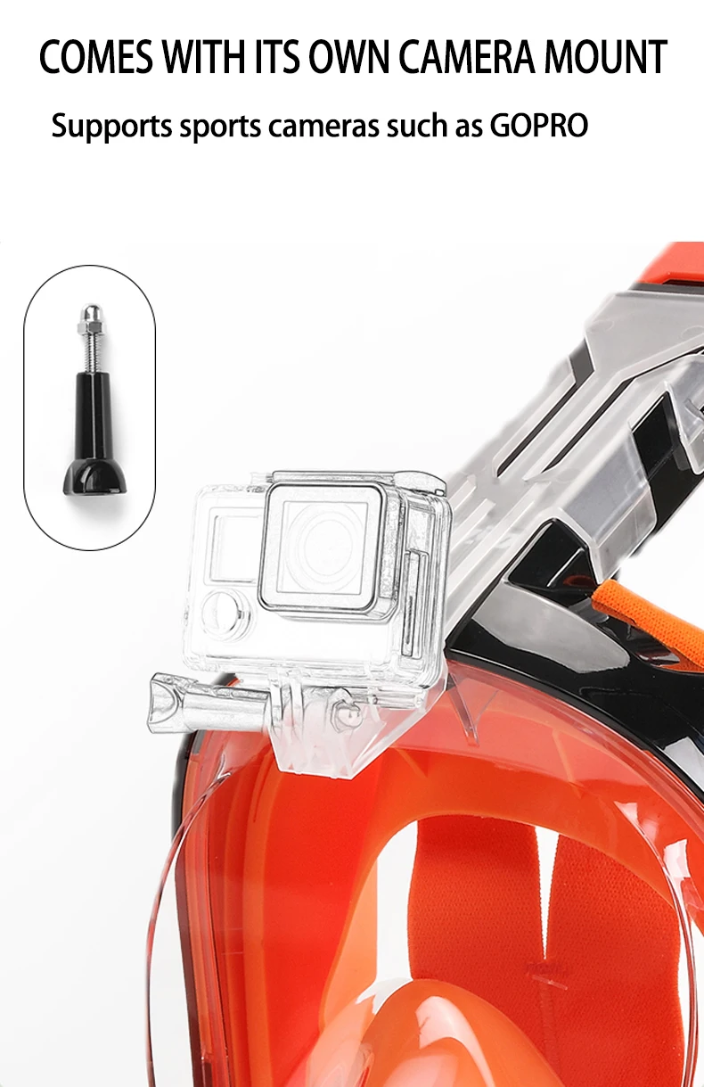 JSJM Máscara de snorkel de cara completa con soporte de cámara desmontable Snorkel Natación Máscara de buceo Vista amplia Anti-niebla Anti-fugas para adultos