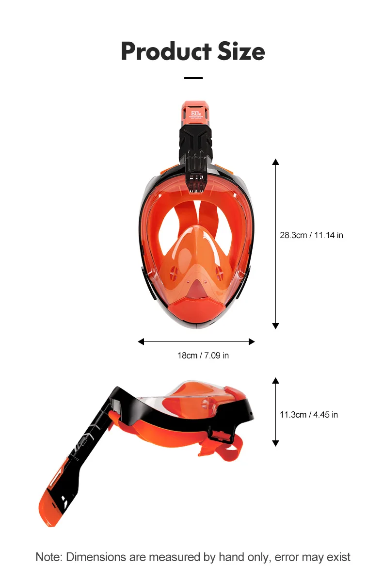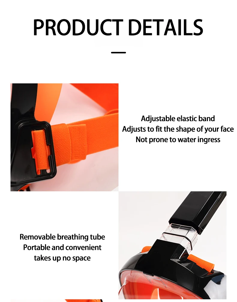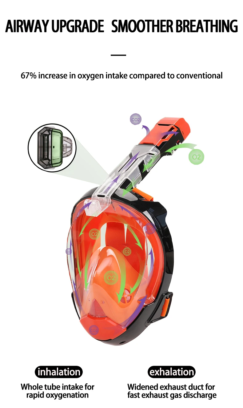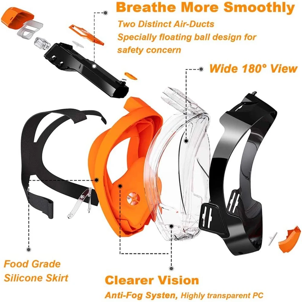 JSJM Máscara de snorkel de cara completa con soporte de cámara desmontable Snorkel Natación Máscara de buceo Vista amplia Anti-niebla Anti-fugas para adultos