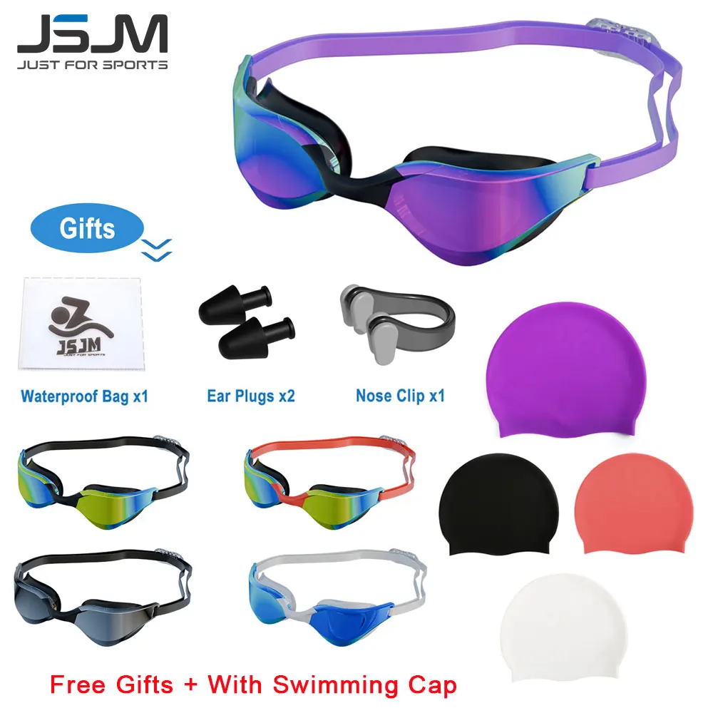 JSJM nuevas gafas de natación profesionales para adultos HD antiniebla impermeable gorro de natación de silicona + gafas de natación para hombres y mujeres regalos