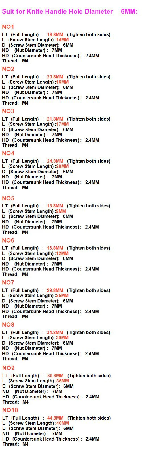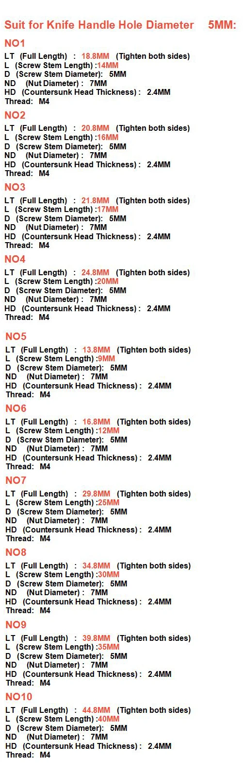 Package Include: 10 Sets Knife Handle Lock Screws