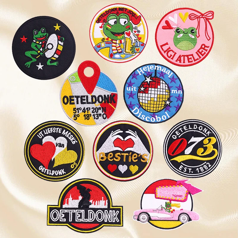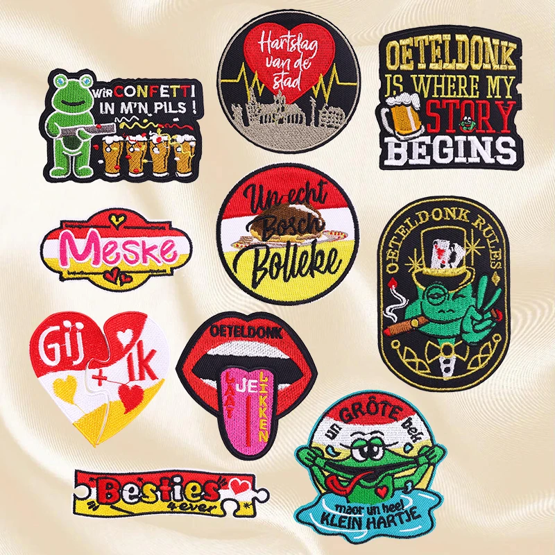 Juego de 10 Uds. De parches bordados con emblema Oeteldonk, parche de Carnaval de Países Bajos DIY, parches para planchar para ropa, sombreros, insignias de costura