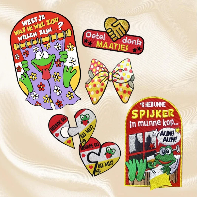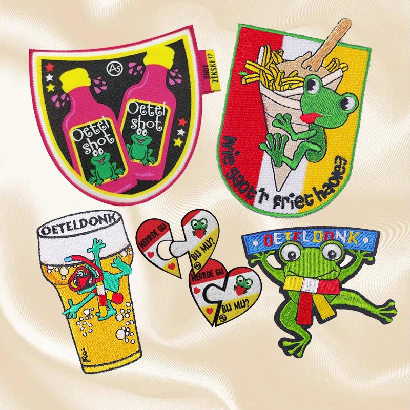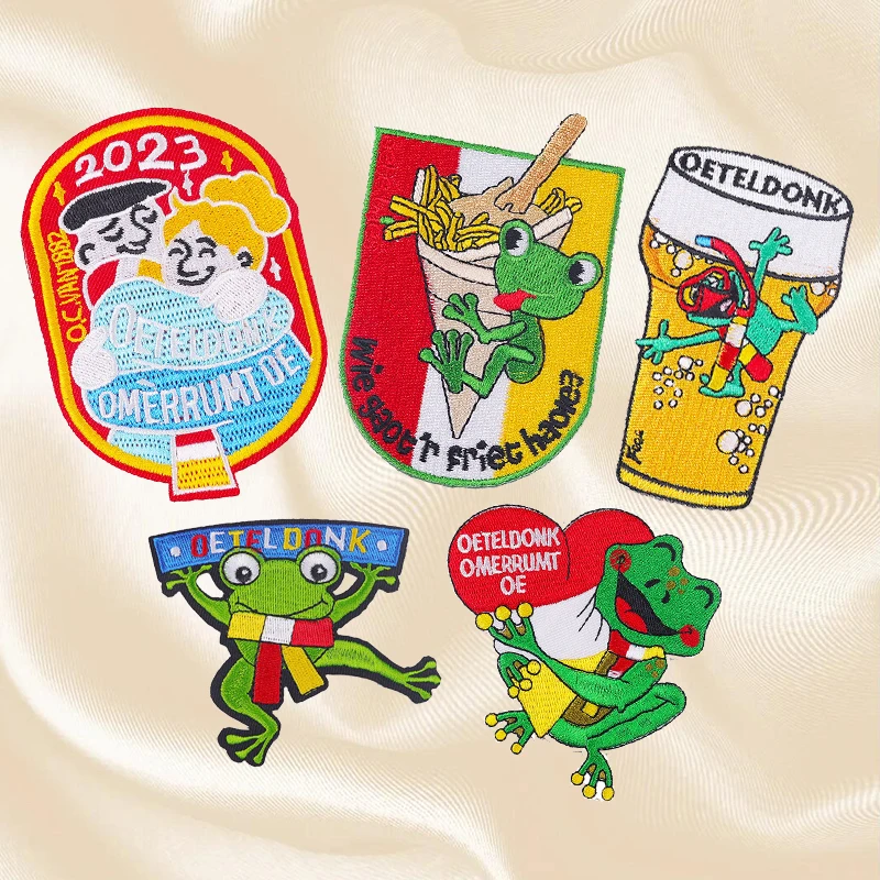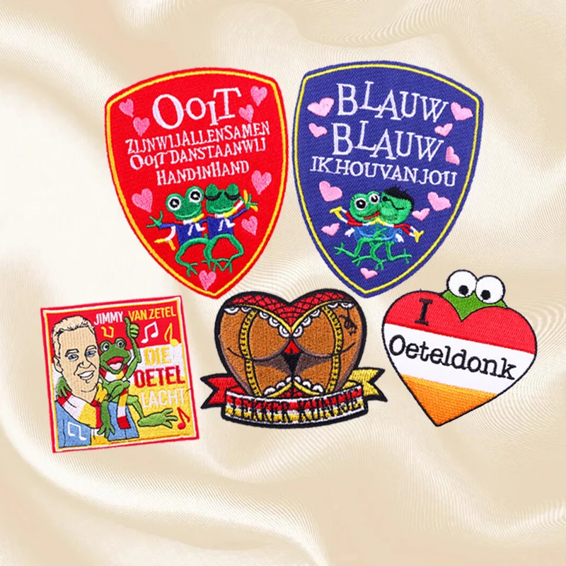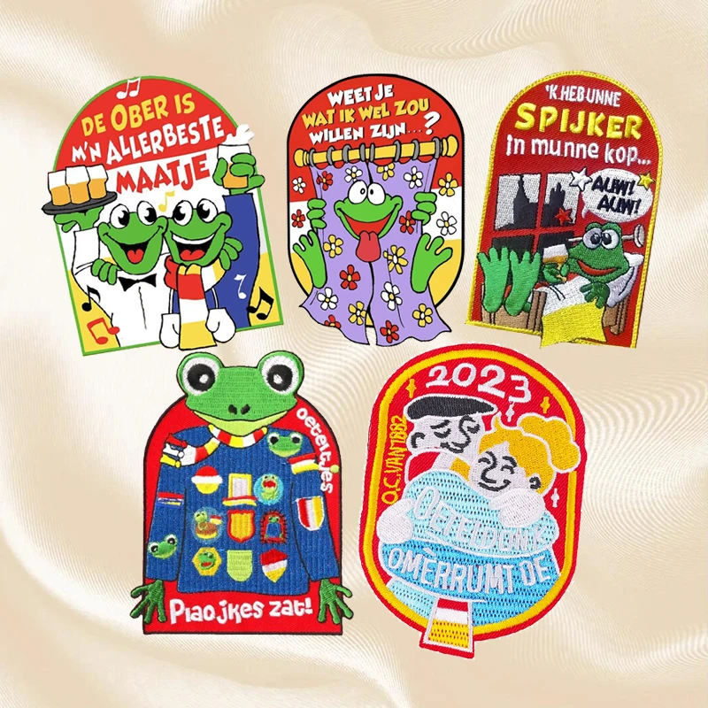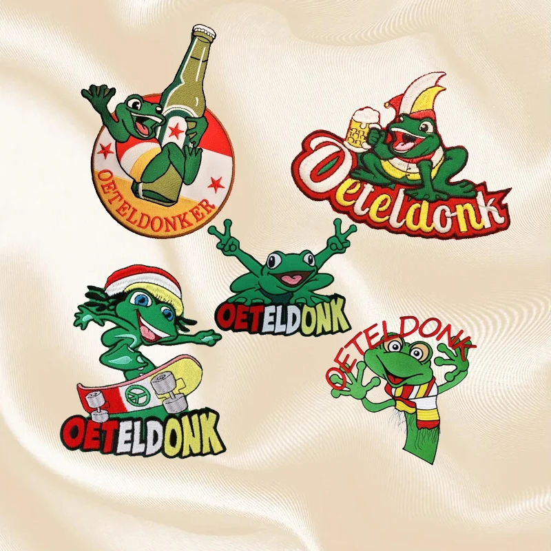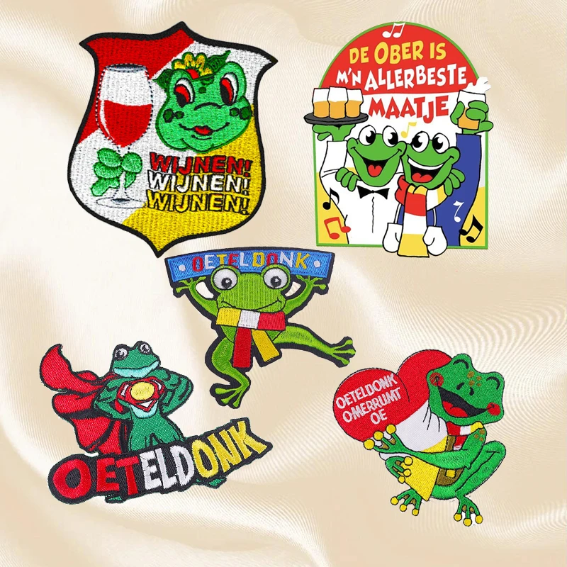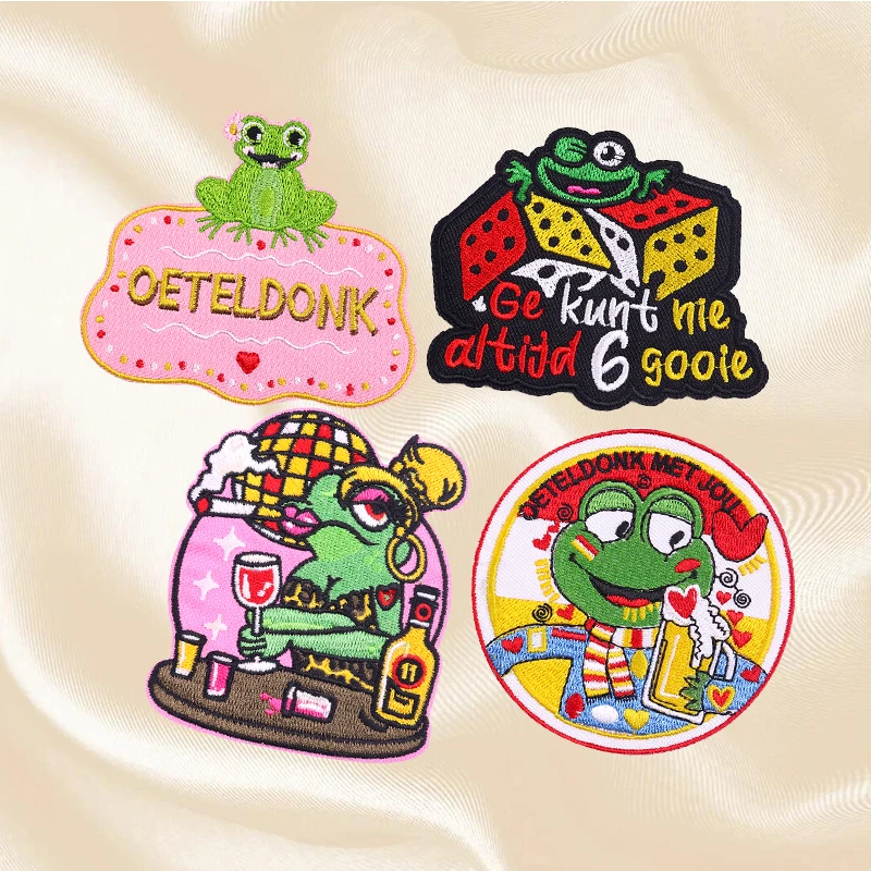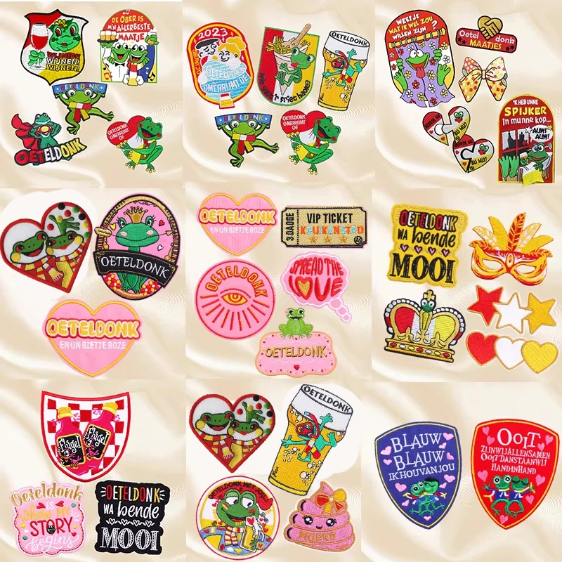 Juego de 2-6 uds de parches con emblema Oeteldonk, parches de carnaval para Países Bajos, parches para planchar para ropa, aplicaciones de planchado de rana de dibujos animados