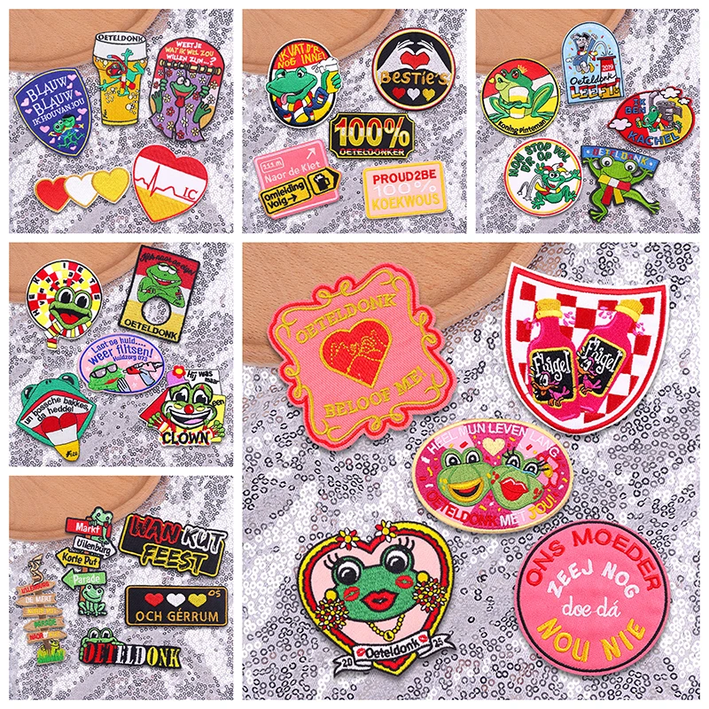 Juego de 3-6 uds de parches bordados de Carnaval Oeteldonk para ropa, emblemas de rana de Países Bajos, parche para planchar para decoración uniforme DIY