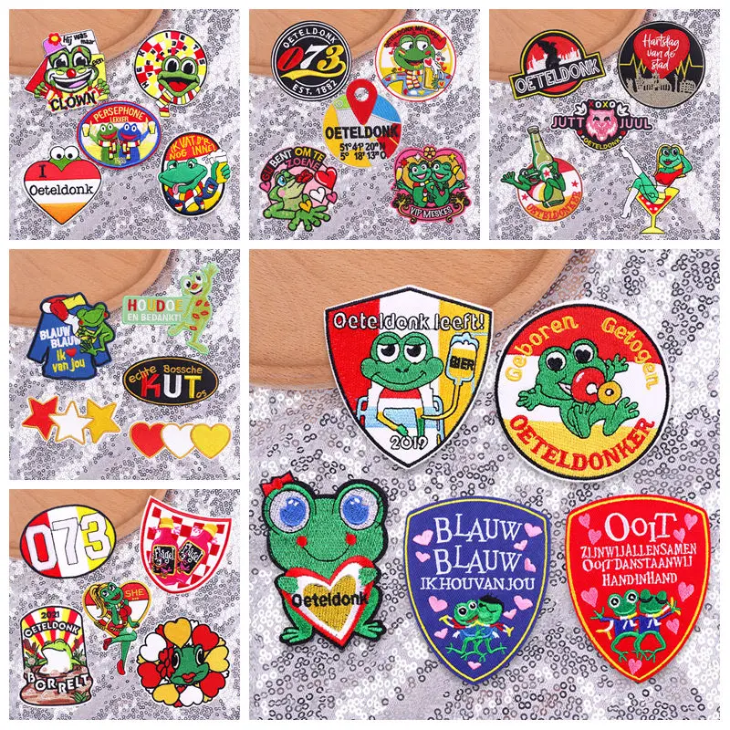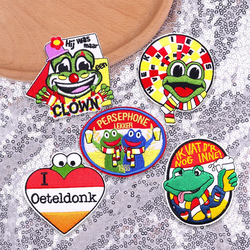 Juego de 3-6 uds. De parches bordados Oeteldonk de Países Bajos, emblema de rana de Carnaval, parches para ropa, insignias DIY, decoración de regalos, 2026