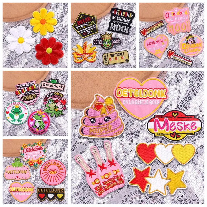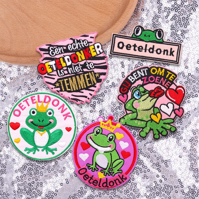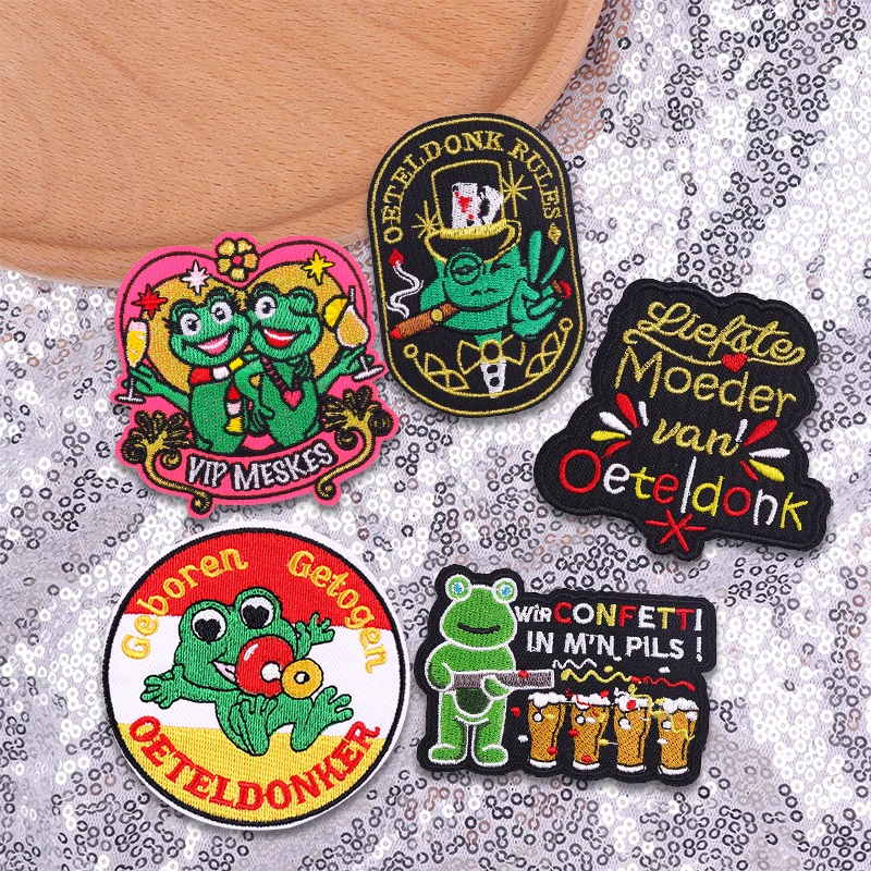 Juego de 3-6 uds. De parches para planchar Oeteldonk de Países Bajos para decoración de ropa, emblema de rana de Carnaval, parche bordado, insignias de costura