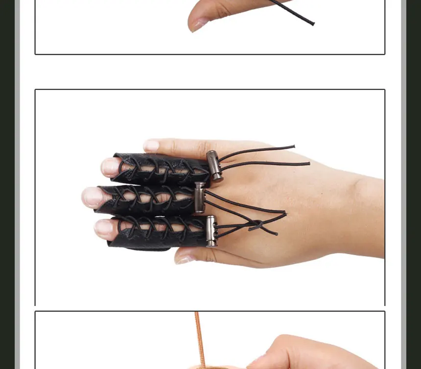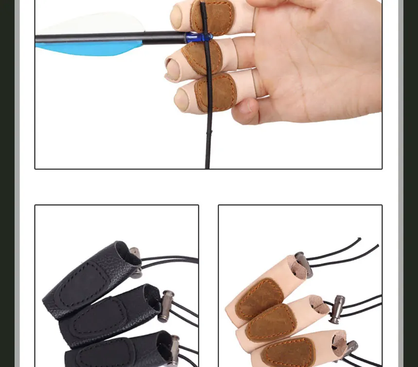 3 unids/set de cuero de vaca tiro con arco 3 dedos protección tiro con arco Punta de mano cuna protector de dedo guante